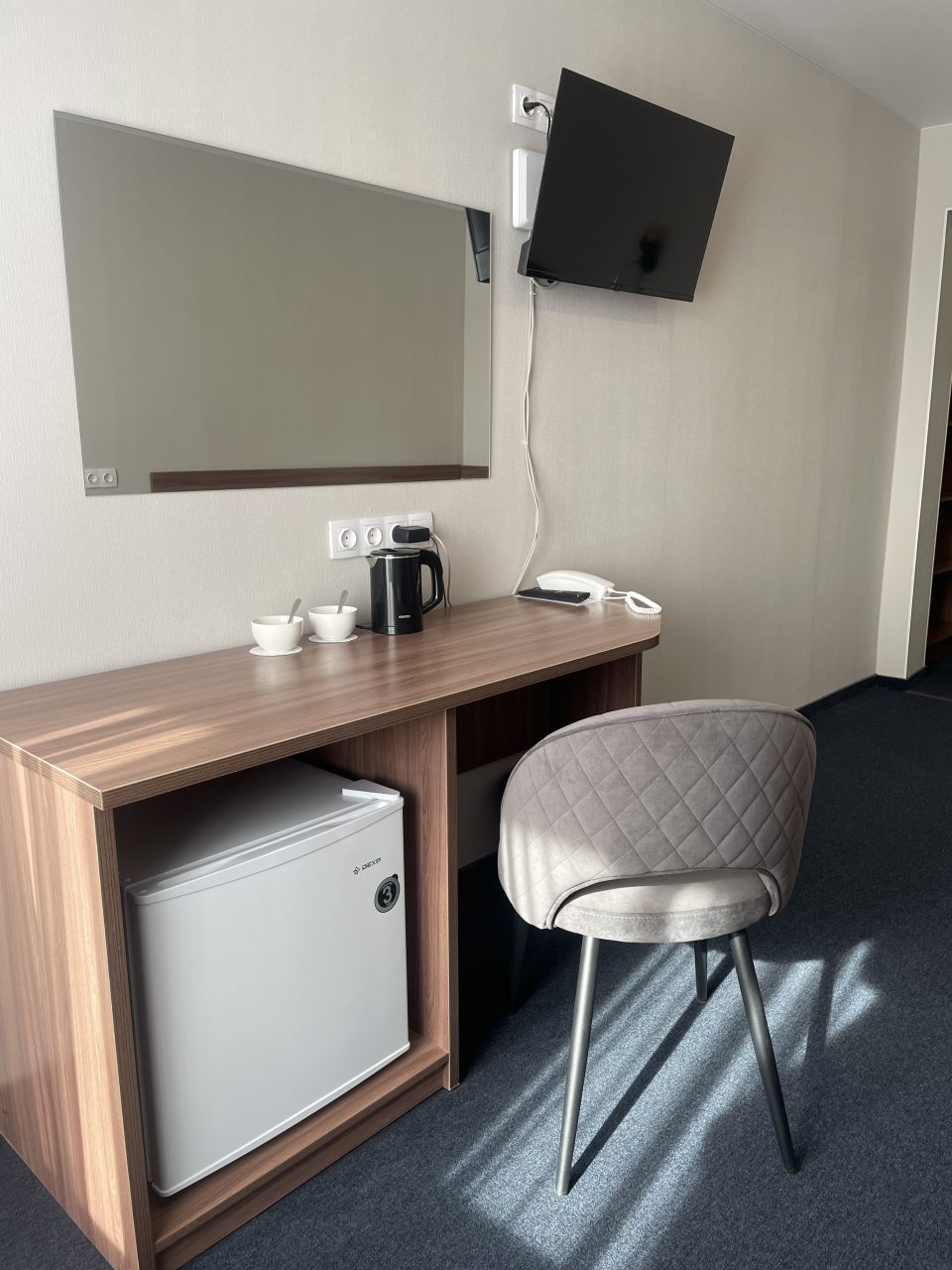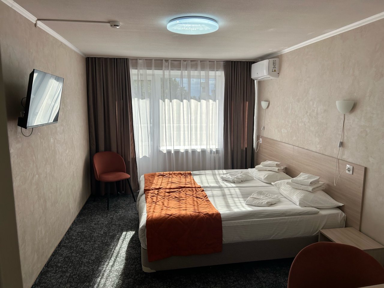 Неплохой бюджетный вариант для короткой остановки в Иваново — всё честно и без лишнего пафоса. Заселили быстро, персонал действует слаженно. В номере было чисто, бельё свежее, без посторонних запахов. Отдельно стоит отметить хорошую вентиляцию — в помещении легко дышать. Понравилось, что можно купить воду и снеки прямо на первом этаже, удобно ночью. Телевизор работал, хоть мы им почти не пользовались.