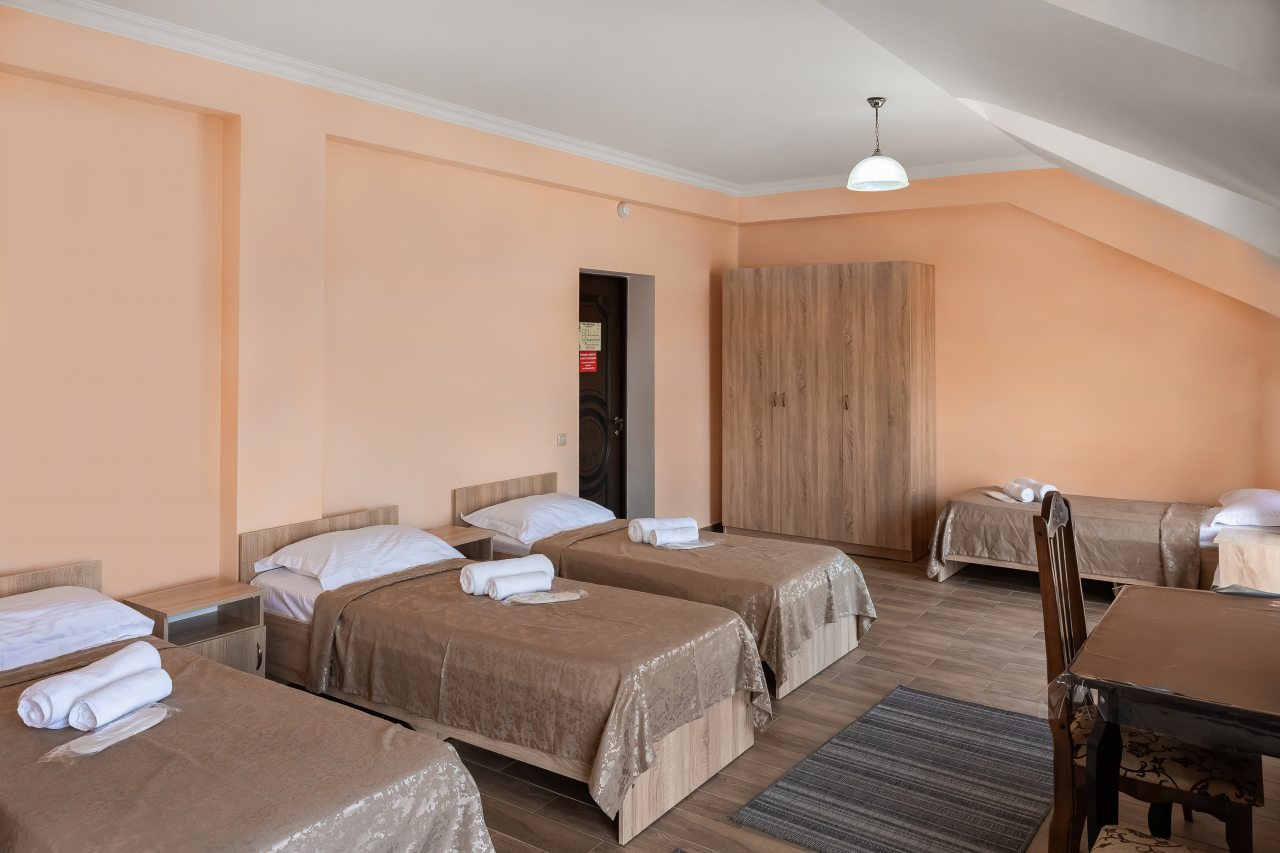 В номерах есть комфортные и удобные спальные места, прикроватные тумбочки, шкаф, сплит-система, удобства (душ и туалет), средства личной гигиены, фен, телевизор и Wi-Fi. Бронируйте номер по телефону или онлайн на 101Hotels.com.