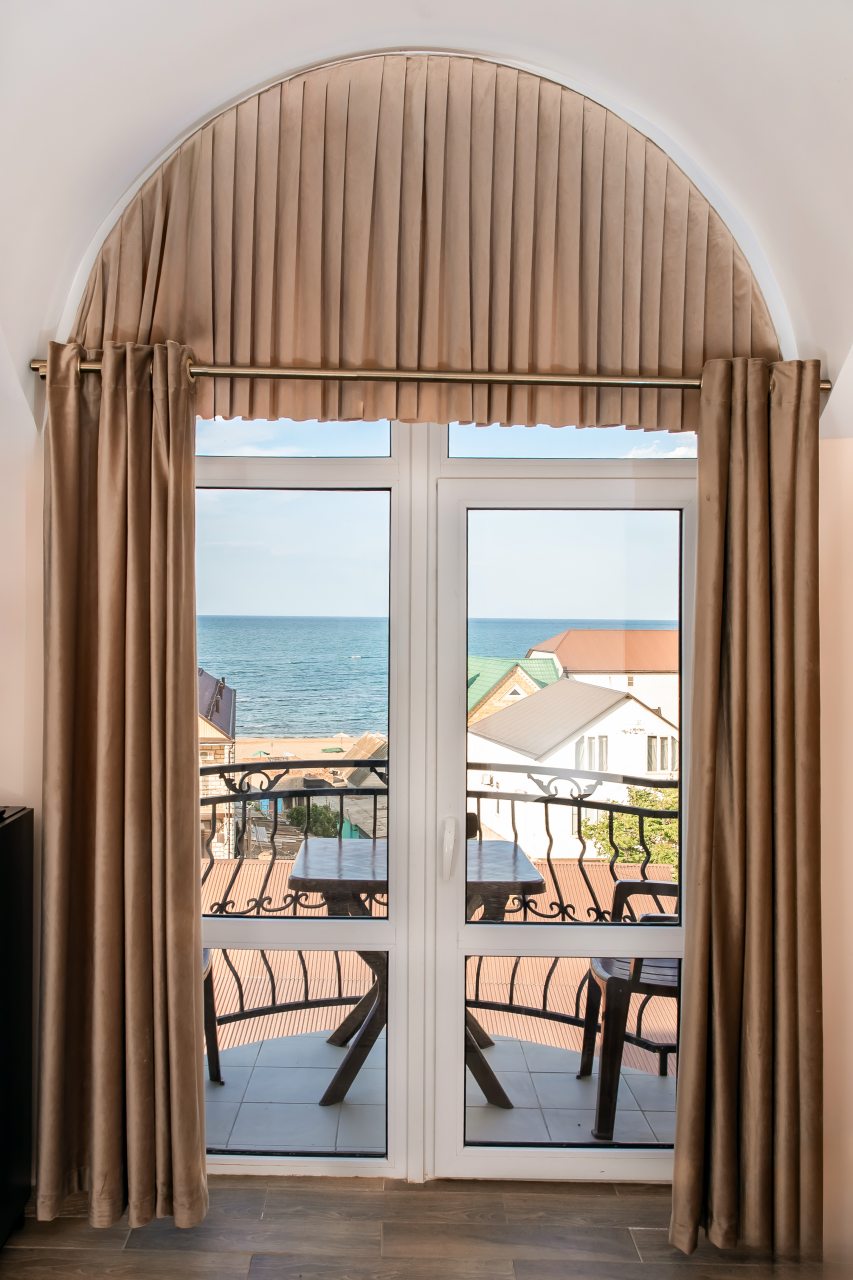 Какие из гостиницы видны великолепные морские закаты! Просто ах и ох! Цена за ее местоположение нас устроила. Мебель в номере я бы не сказала, что прям новая, но все равно хорошего качества, еще не износилась. Кушали мы в ближайшей кафешке. Удобно, что в номере был чайник, можно было его пить в любое время. Номер чистый, светлый. Неплохой. Если бы была возможность, то вернулась бы снова.