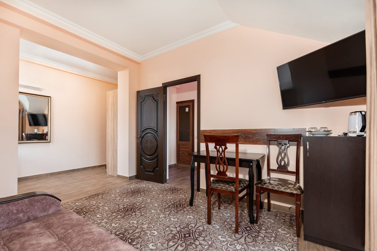 В Дагестане впервые, захотели посетить этот край и остановились в Изербаше. Гостиница понравилась, конечно с ценой как будто перебор, но простили за близость к морю. Рядом кафешки и магазин, вопрос о питании закрылся сам собой. В номере стандартная техника - кондиционер, чайник и холодильник, плоский телевизор.