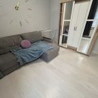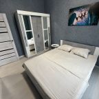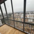 Для удобного размещения имеются двуспальная и односпальная кровати, мягкий диван, затемненные шторы для комфортного сна, телевизоры, балкон с панорамным остеклением, а также ванная комната со стиральной машиной.