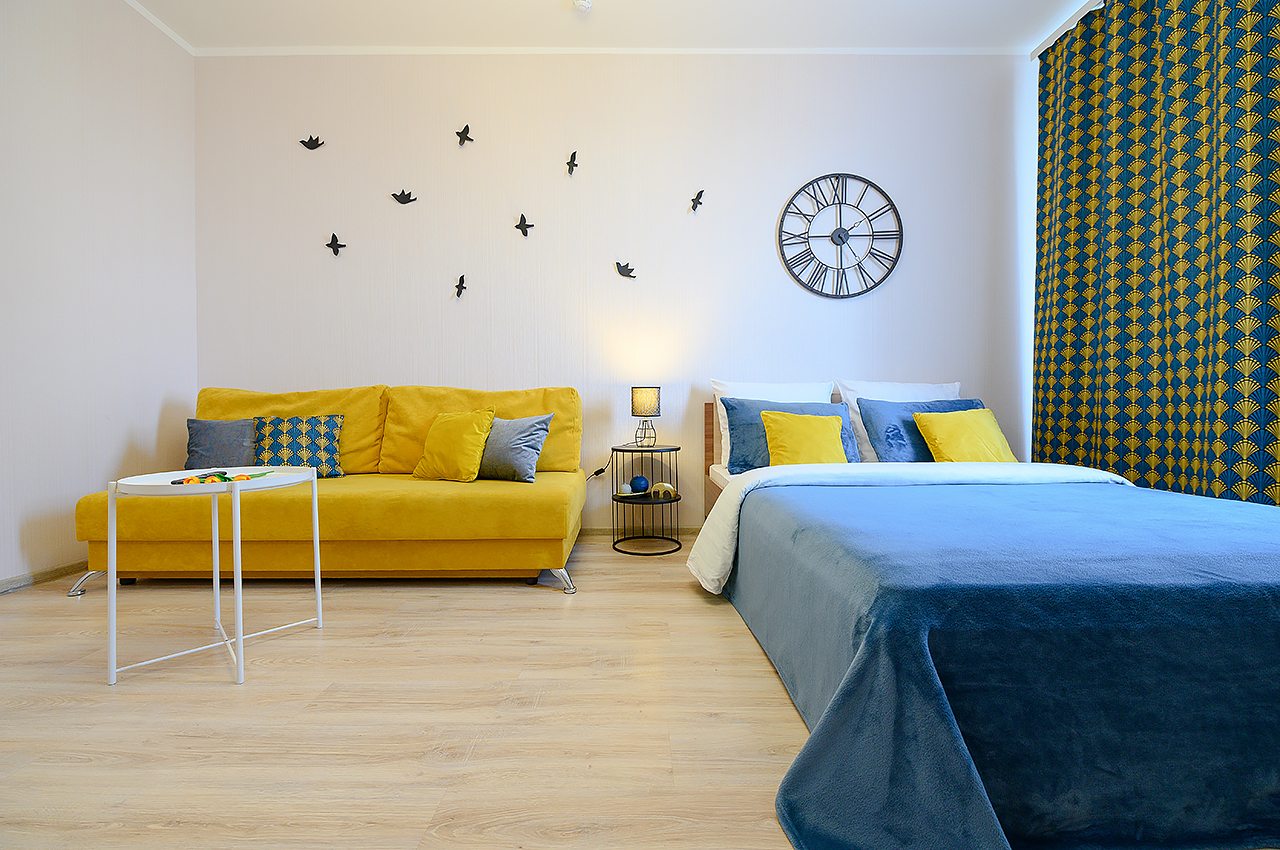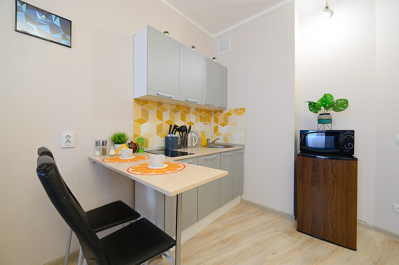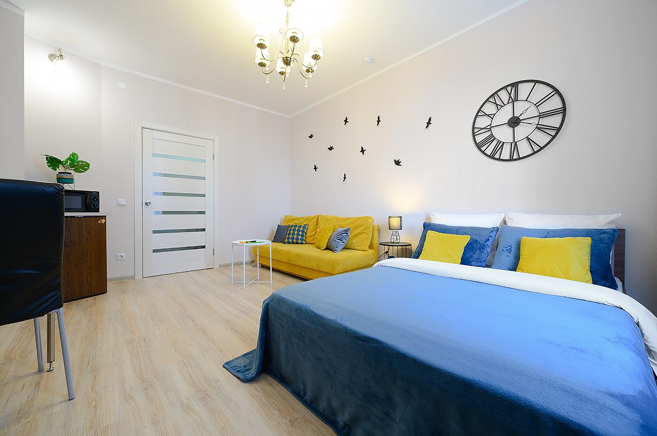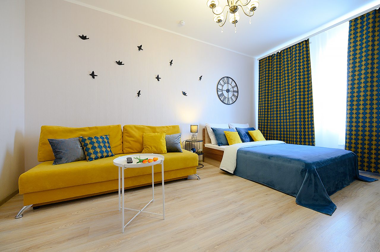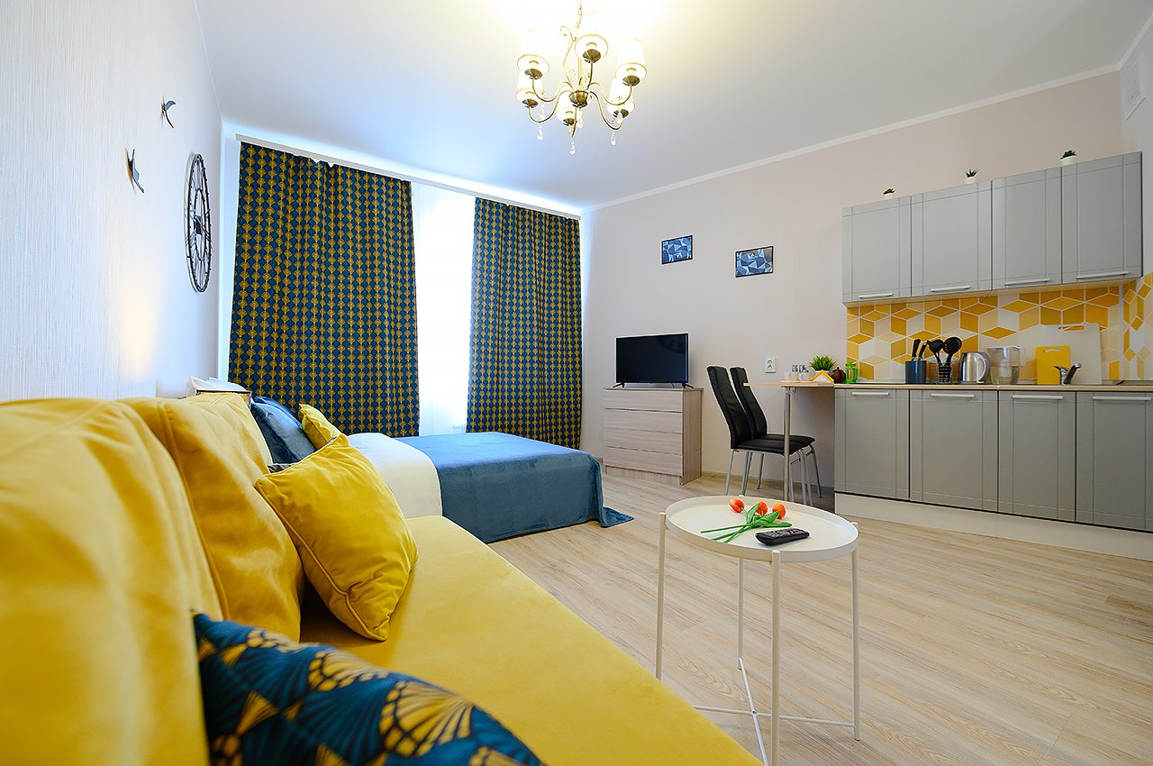 Яркий дизайн. Достаточное свободное пространство, качественная мебель. Особых претензий не возникло, хорошо все прошло, жил здесь три дня, мне понравилось. Всем моим пожеланиям данный вариант соответствовал, необременительное максимально простое бронирование. Хорошая кухонная зона.