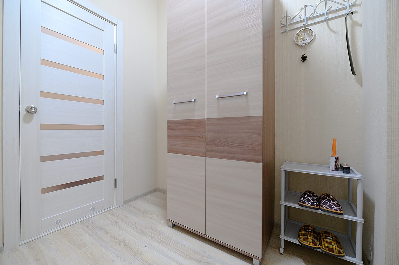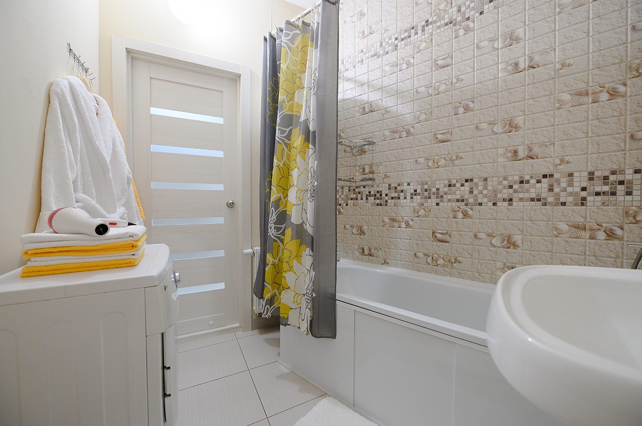 Светлая квартира оснащена Wi-fi, телевизором, удобными спальными местами. В собственной ванной комнате можно воспользоваться феном, набором полотенец и стиральной машиной.
