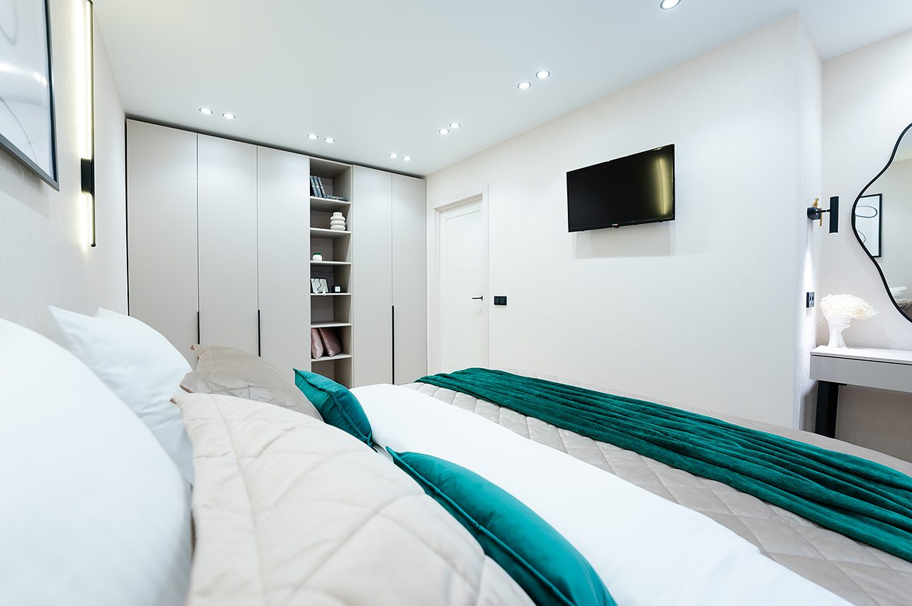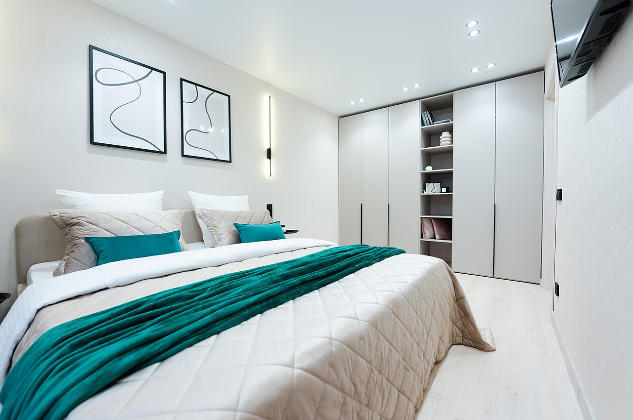Светлая квартира обустроена необходимыми удобствами: ЖК-телевизор, беспроводной интернет, сплит-система, стиральная машина, постельное белье и полотенца, балкон с панорамным видом.