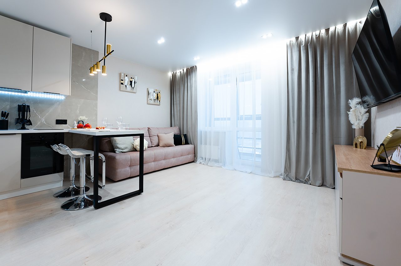 Хорошая новая квартира с дизайнерским ремонтом. Очень понравилось здесь все. Отличная обстановка, идеальная чистота, есть все удобства. Удобное расположение недалеко от центра. Адекватные владельцы, были на связи, но не настойчиво. Рекомендую!