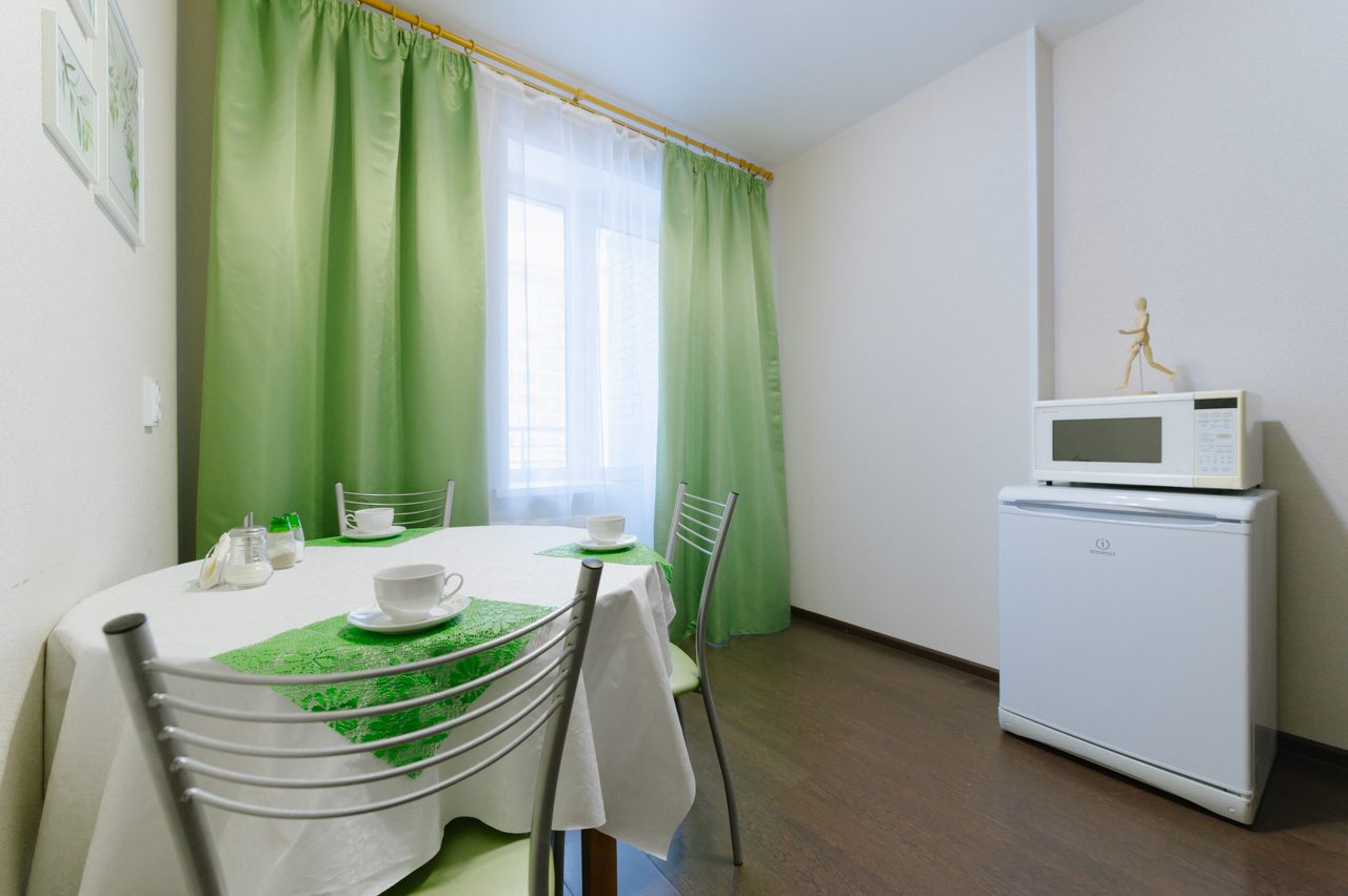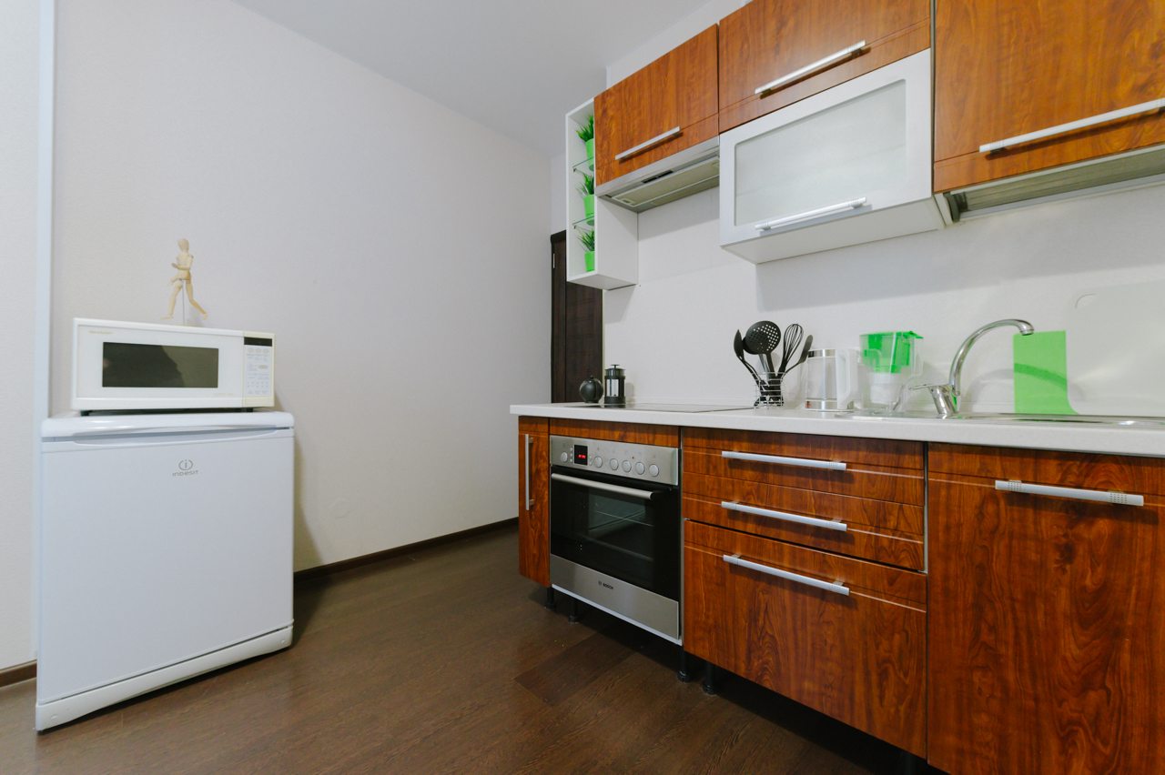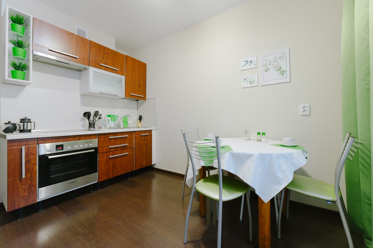 В распоряжение гостей предоставляется кухня, которая обустроена обеденным столом, а так же оборудована бытовой техникой для приготовления пищи. В шаговой доступности продуктовый магазин и ресторан «Вино и мясо».