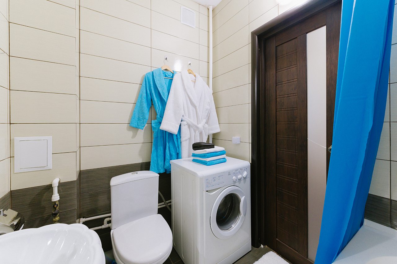 В квартире уютно, много современной бытовой техники утюг, стиральная машина, фен, микроволновая печь, чайник. Вместительная духовка понравилась, готовили сразу несколько блюд в ней. Халаты есть, постельное, полотенца в отличном состоянии. Ставлю плюс.