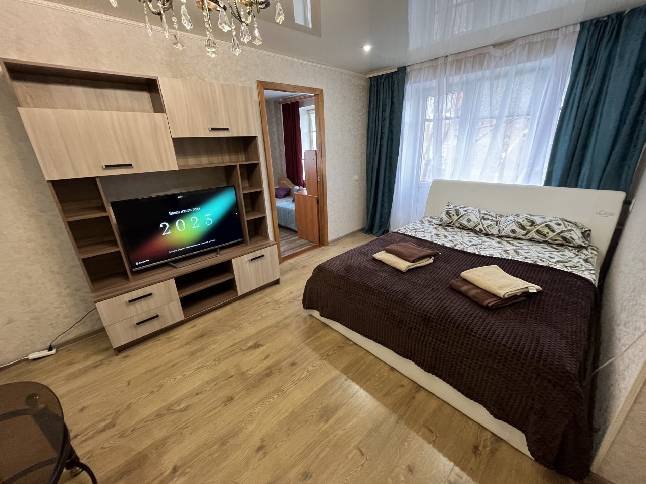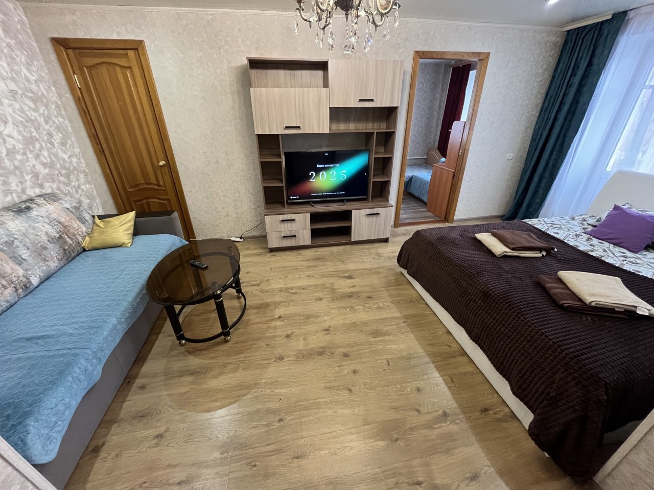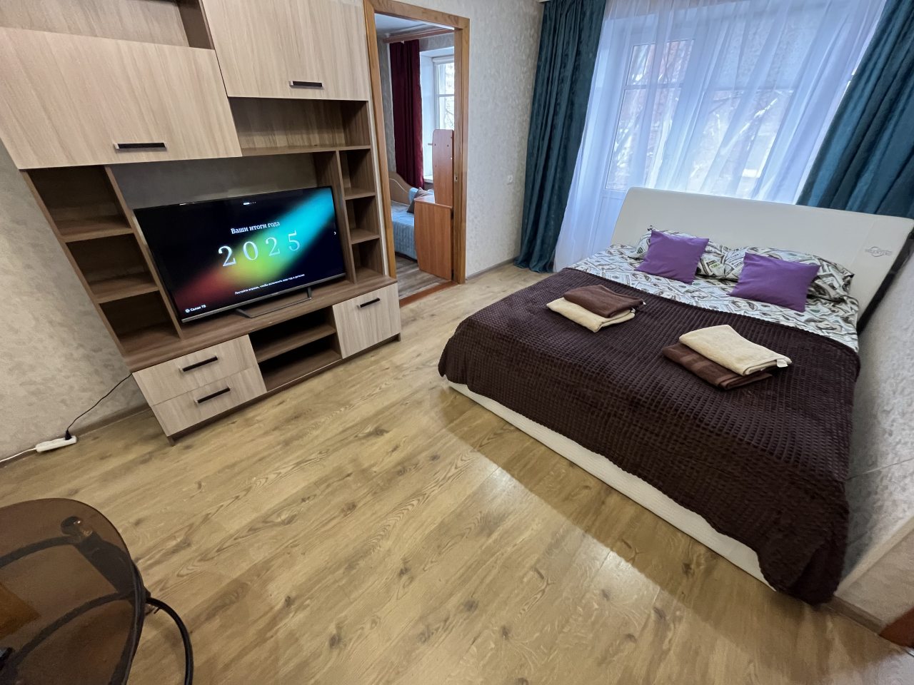 Уютная квартира оборудована удобными спальными местами, затемненными шторами, шкафом для хранения личных вещей, гладильными принадлежностями, ЖК-телевизором с кабельным телевидением, Wi-Fi и др. Санузел укомплектован качественной сантехникой и стиральной машиной.
