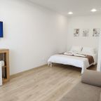 Квартира достаточно просторная и включает в себя кухню, спальню и санузел. Там есть все необходимое для проживания. Для гостей в спальне имеется большая кровать с мягкими подушками, телевизор и диван, который при необходимости раскладывается. В санузле находится стиральная машина, ванна, туалет и раковина с зеркалом. Проживающим будут доступны набор постельного белья, полотенца, средства личной гигиены и фен.