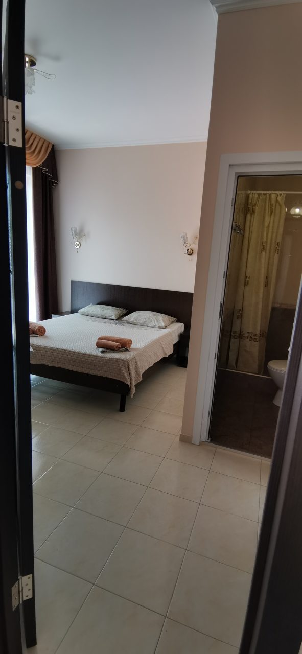 В номерах есть холодильник, кондиционер, телевизор,огромная кровать, душ, туалет.