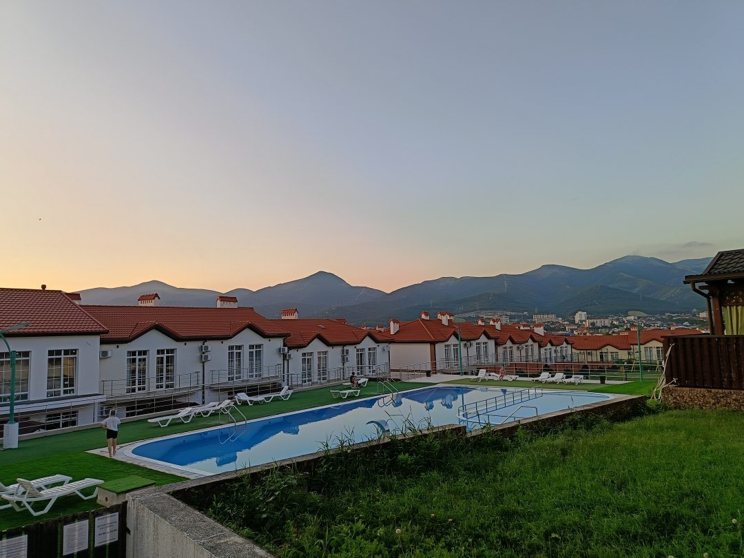 Отель отличный,расположен в тихом месте. До центрального пляжа пешим ходом 15 минут. Есть другая дорога до моря,но за 6 минут. В проживание входят завтраки. Разнообразные каши,салаты,колбасы,сыр,яйца,омлет,яичница. Есть выпечка. Из напитков-чай ,растворимый кофе,компот и сок. Можно заказать кофе из кофемашины,но за деньги. Здесь же можно пообедать и поужинать. Меню разнообразные. Голодными не останетесь. Уборка ежедневная. Смена белья раз в три дня. В номере двухспальная кровать,холодильник,чвйник,телевизор,сплит,душева кабина.Есть небольшой балкон со столиком и стульями..При отеле есть зона барбекю, при желании можно пожарить мясо,овощи. Недалеко от отеля есть небольшой бассейн глубиной до 1.5 метра, с лежаками. В общем отель понравился, приветливый коллектив. Особая благодарность администратору Веронике,которая помогла с размещением,показала дорогу до бассейна и короткую дорогу до моря. И с лёгкостью решала все возникающие вопросы.