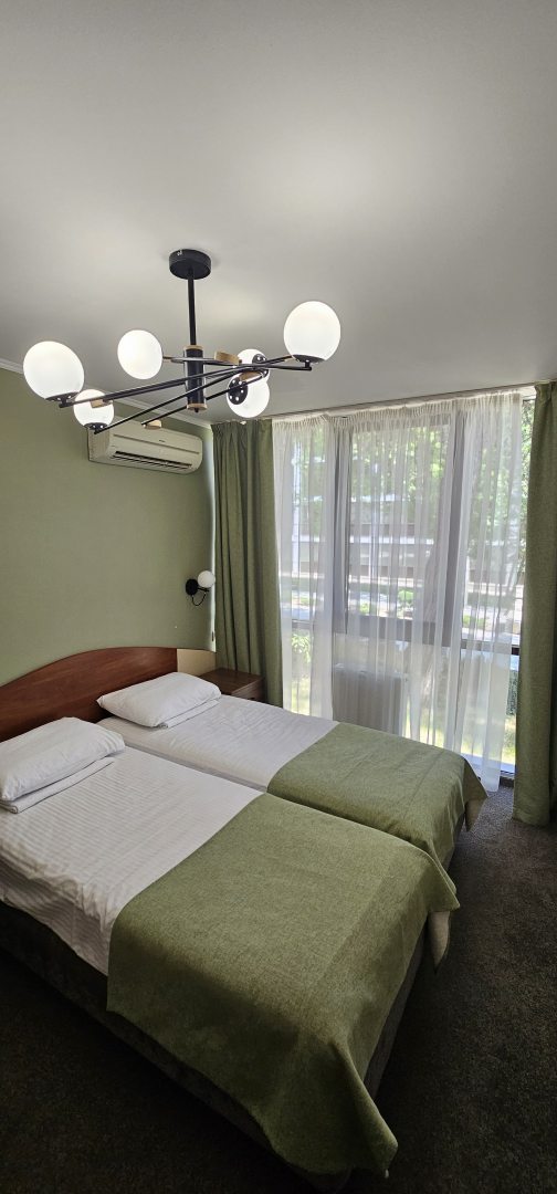 Для размещения представлены двухместные номера нескольких категорий с видом на море. Они оснащены необходимой для комфортного отдыха и проживания мебелью, современной техникой и сейфами для хранения личных вещей. В ванных комнатах установлены душевые кабины, а также предусмотрены полотенца и фен. Гостям предлагается воспользоваться частной автопарковкой и услугами по глажению одежды. Для решения возникающих вопросов в санатории работает круглосуточная стойка регистрации. Любезные администраторы своевременно протянут руку помощи в любой ситуации.