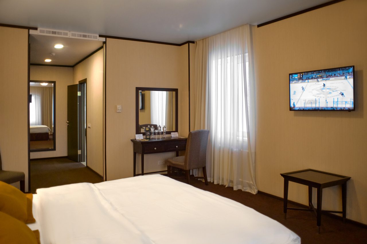 Бронировал студио (с двумя кроватями) номер. Нас просто поразило, как же красиво это выглядело! Проживая в этом номере чувствовал себя особой персоной. В номере дополнили комфорт присутствие щетки для одежды и для обуви, сейф, телефон, тапочки и халат. Нам очень понравилось! Мы обязательно вас будем рекомендовать!