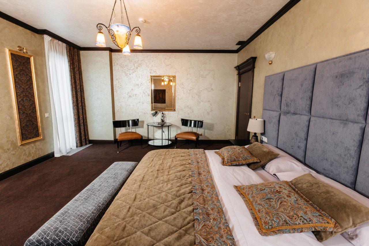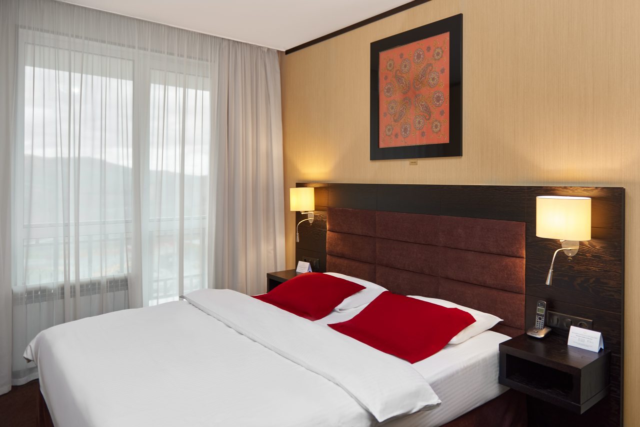 К размещению отдыхающих подготовлены 44 номера различных категорий, начиная от «Стандарт», заканчивая «Сьюит», которые отлично подойдут для размещения пары любого возраста, семьи или индивидуального путешественника. Интерьер выполнен в европейском стиле и создает ощущение комфорта и уюта. Все номера оформлены качественной мебелью и техникой, включая кондиционер, сейф и телевизор с плоским экраном.