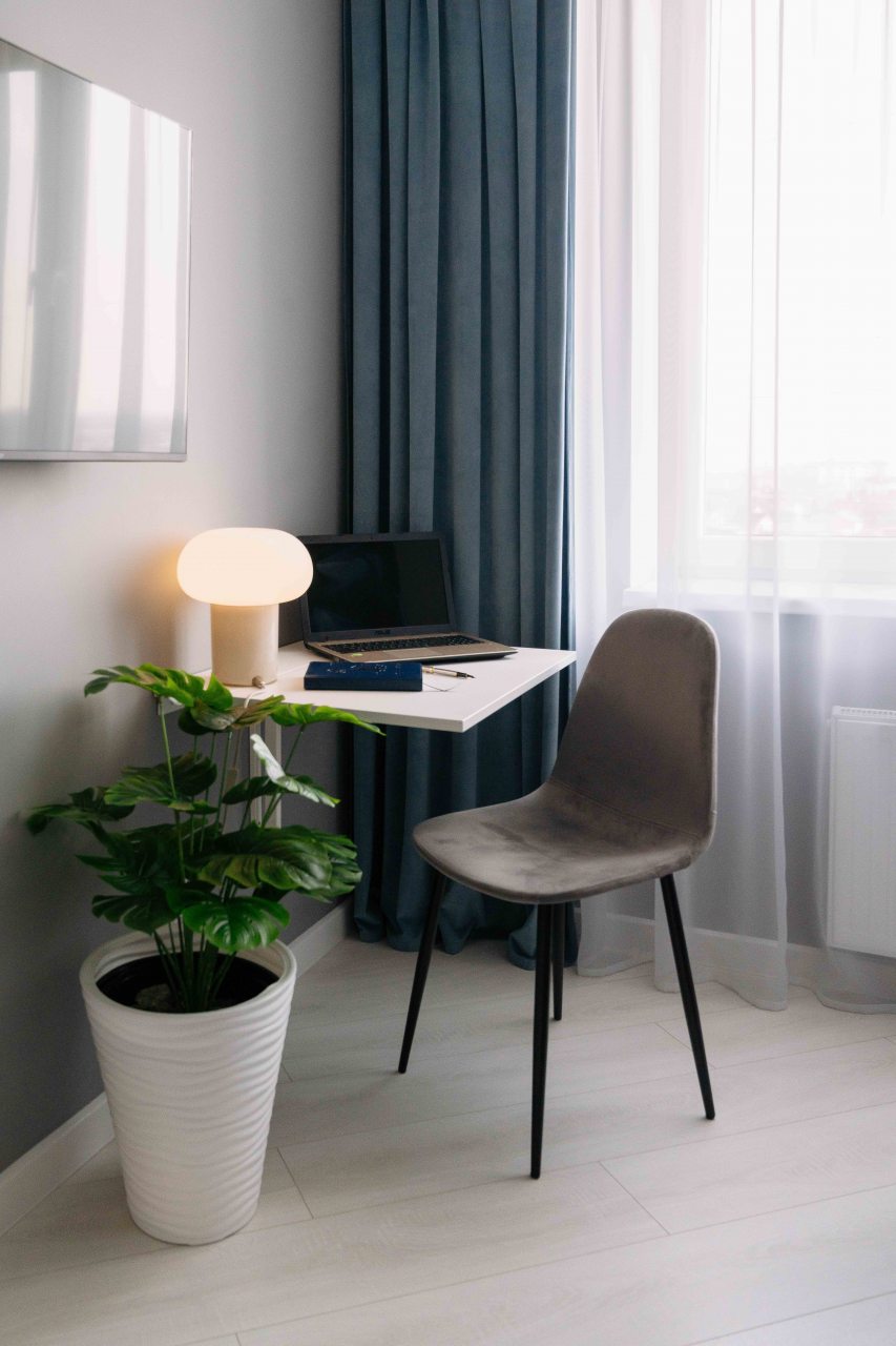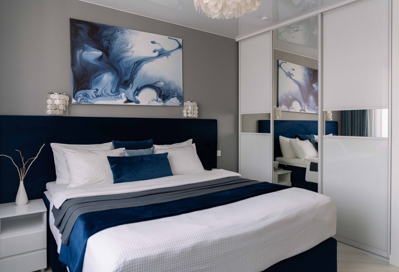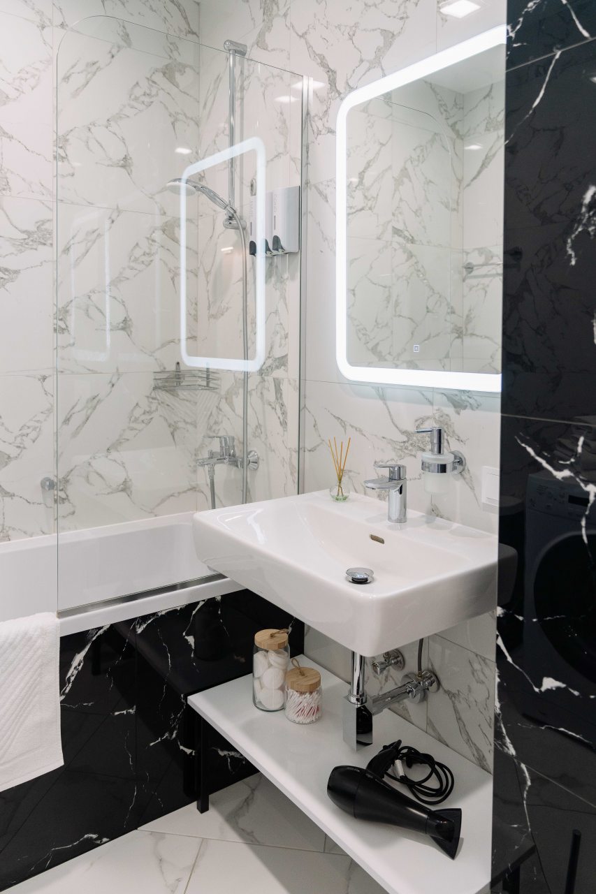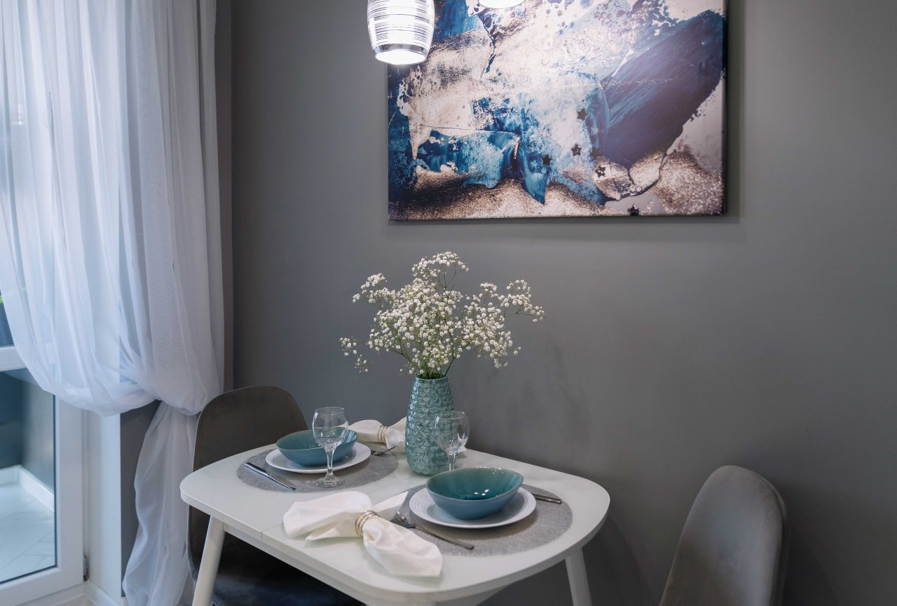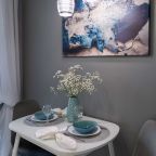 Апартаменты оформлены в современном стиле интерьера и приятных цветовых решениях. В их оснащение входит качественная мебель и техника: две односпальных кровати с удобными матрасами и мягкими подушками, телевизор, рабочая зона. В санузле установлена ванна, зеркало с подсветкой и раковина, гости могут воспользоваться феном и ватно-бумажной продукцией.