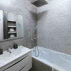 Данные апартаменты подойдут для размещения большой компании, поскольку на площади 80 квадратных метров предусмотрено 6 спальных мест, включая удлиненную двуспальную кровать и две диван-кровати. А наличие пола с подогревом, онлайн-кинотеатра Amediateka, живых растений, письменного стола, гладильных принадлежностей делает пребывание максимально комфортным. В ванной комнате также все продумано до мелочей: от полотенец и стиральной машины до дополнительного санузла с гигиеническим душем.