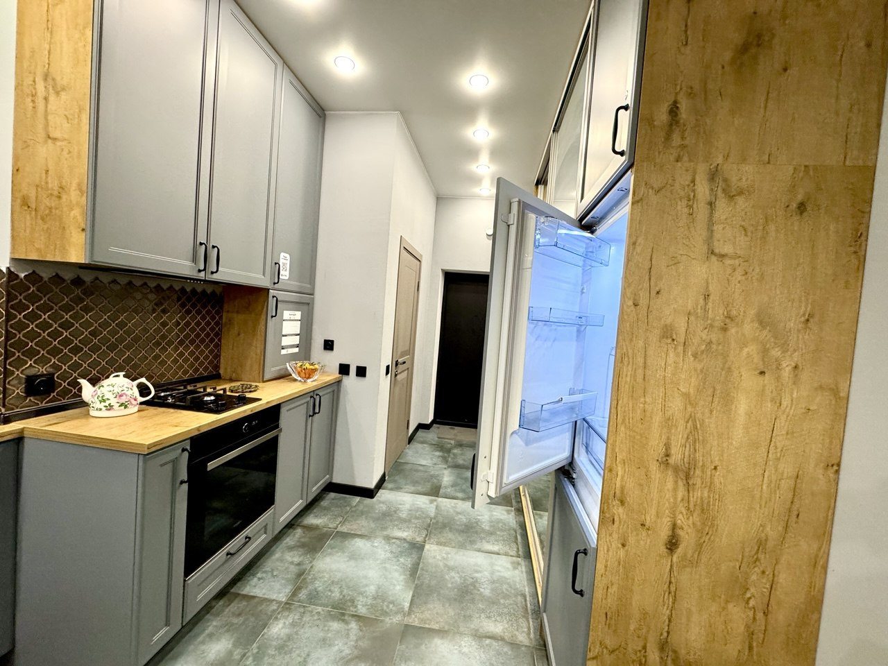 На кухне вы найдете принадлежности для приготовления пищи: посуду, микроволновую печь, электрический чайник, газовую плиту, духовой шкаф, тостер, холодильный шкаф, столовые приборы. В 0,01 км ресторан с морепродуктам «Ветви» и ресторан «Качели», а также кофейня с авторскими десертами.