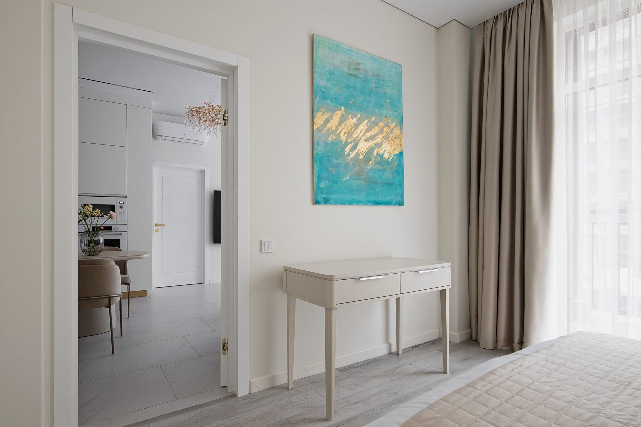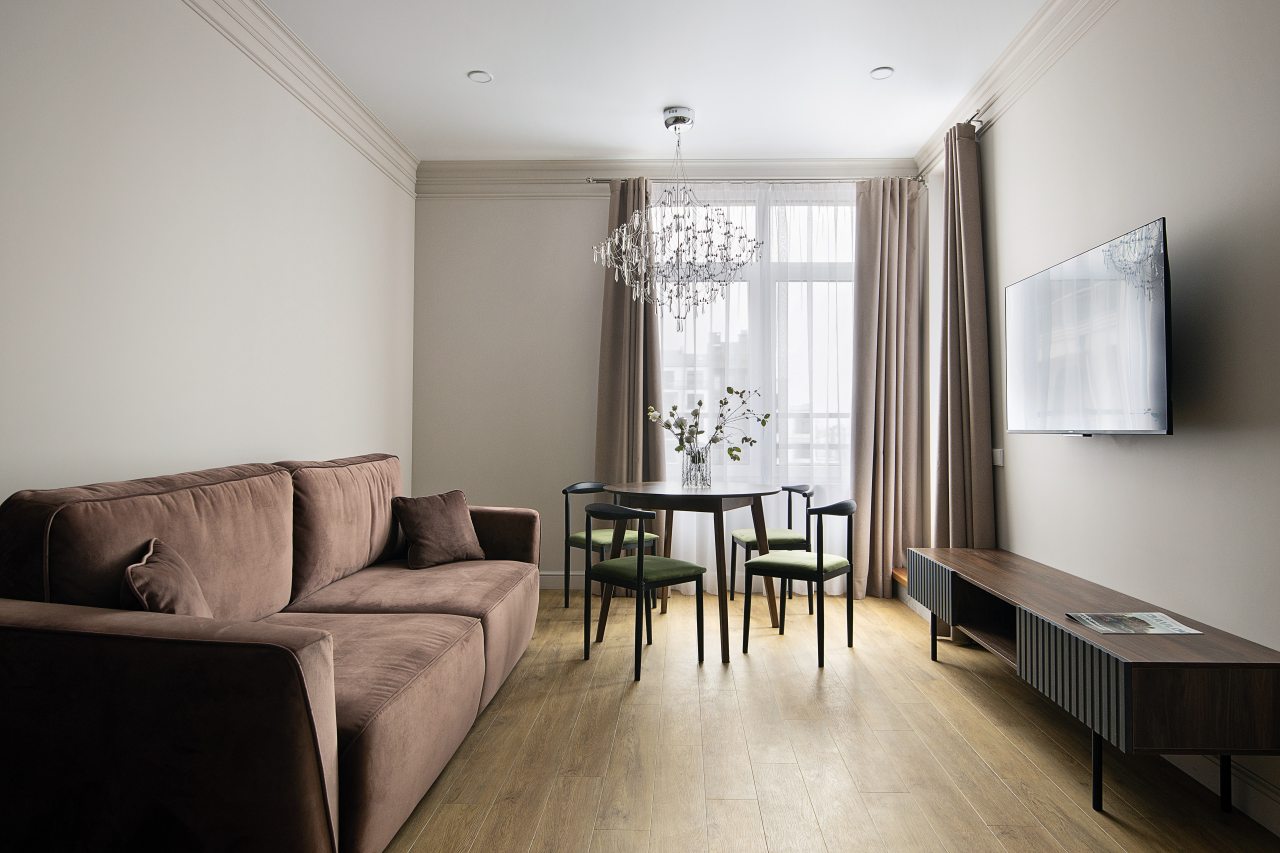 Бронировали студио для отдыха, и хочу сказать, что очень респектабельно вышло! Хоть апартаменты и небольшие в плане площади, но вместительные по мебели. Кровать удобная, матрас чистый, а белье вот правда – белоснежное. Интернет шустрый, быстро прогружались страницы. Во дворе есть площадки для детей.