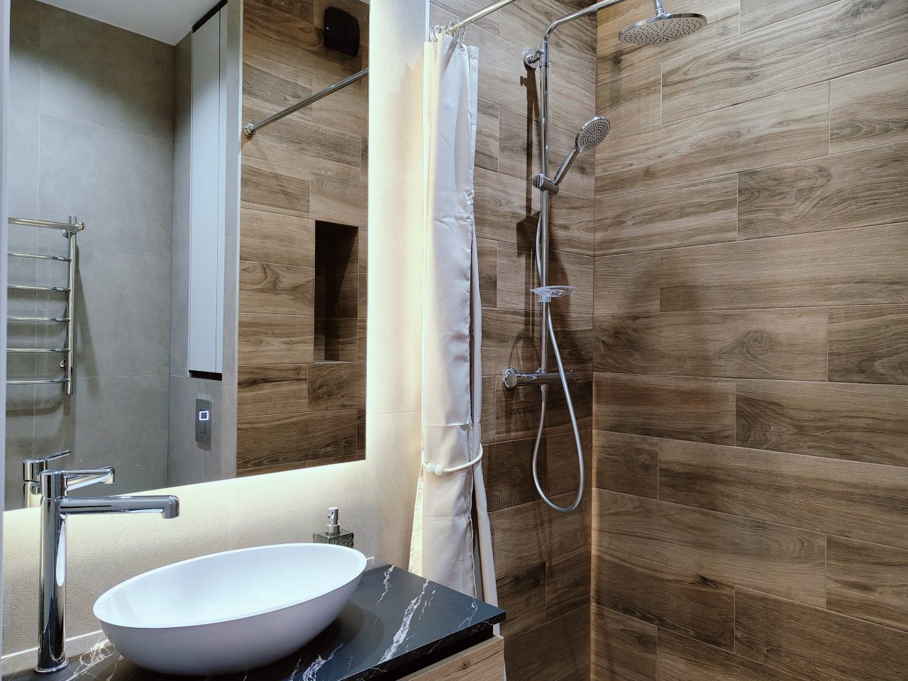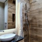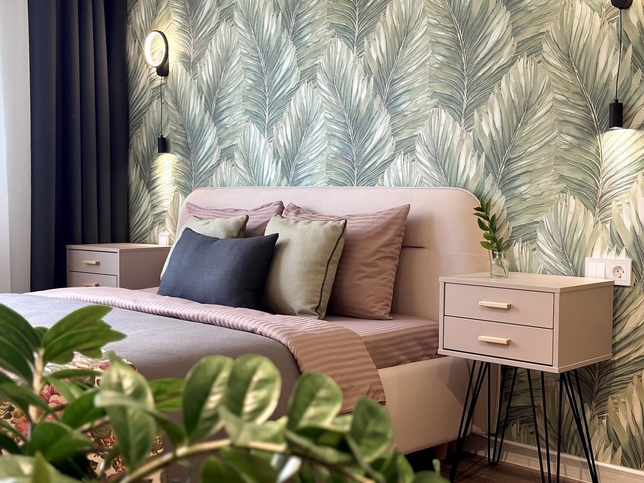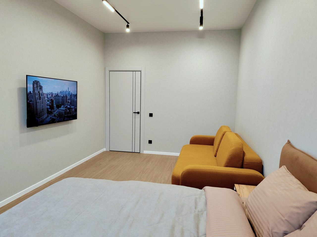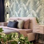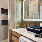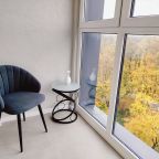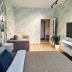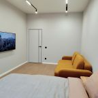 Апартаменты с современным ремонтом оснащены двуспальной кроватью, диваном, телевизором, письменным столом, кондиционером, шкафом, вешалками для верхней одежды, wi-fi и др. Санузел оборудован комплектом качественной сантехники, зеркалом с подсветкой, стиральной машиной, феном.