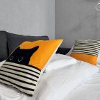 Отдыхающим предлагается квартира, оформленная в спокойных тонах. В апартаментах имеется двуспальная кровать, прикроватные тумбочки, туалетный столик, несколько удобных диванов, стиральная машина, телевизор с плоским экраном, шкаф для одежды, балкон, собственная ванная комната и кухня. Кроме того, гостям предоставляется постельное белье, полотенца, средства личной гигиены и бесплатный Wi-Fi.