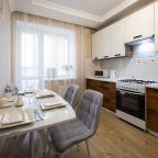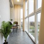 В распоряжении гостей — удобная двуспальная кровать, мягкий диван, ЖК-телевизор, кондиционер, вместительный комод, затемненные шторы, просторная лоджия с панорамным остеклением, гардеробная, санузел с душевой и стиральной машиной.