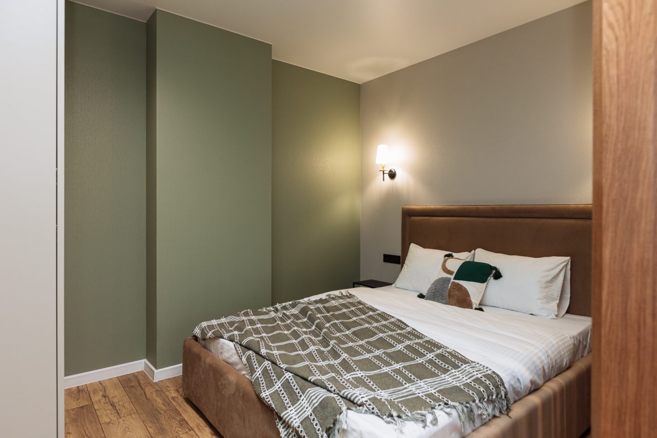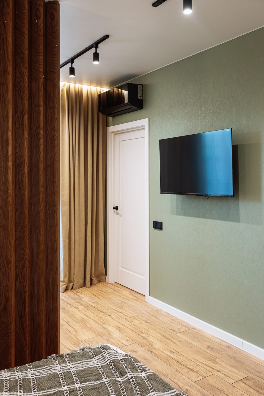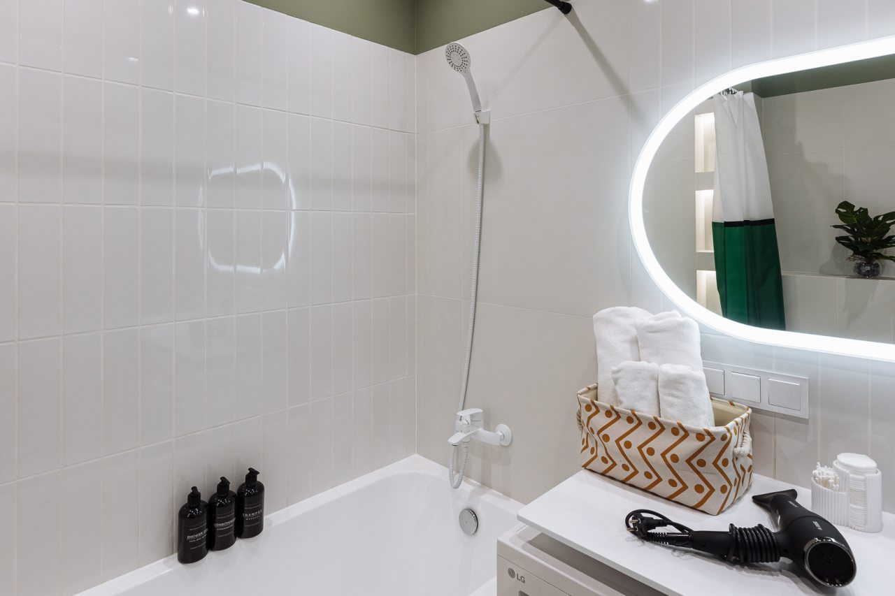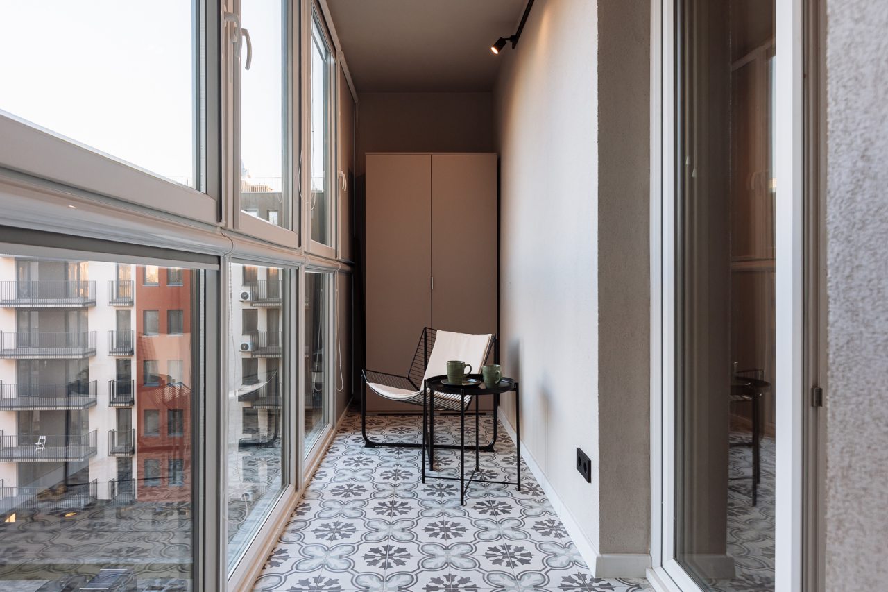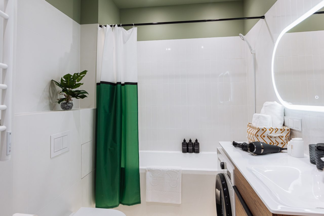 Стильные апартаменты с современным ремонтом укомплектованы удобными спальными местами, розетками возле кровати, кондиционером, телевизором с плоским экраном, шкафом, вешалками для верхней одежды и балконом с видом на внутренний двор. Санузел оборудован комплектом качественной сантехники, средствами личной гигиены, феном и стиральной машиной. Доступна точка высокоскоростного интернета.