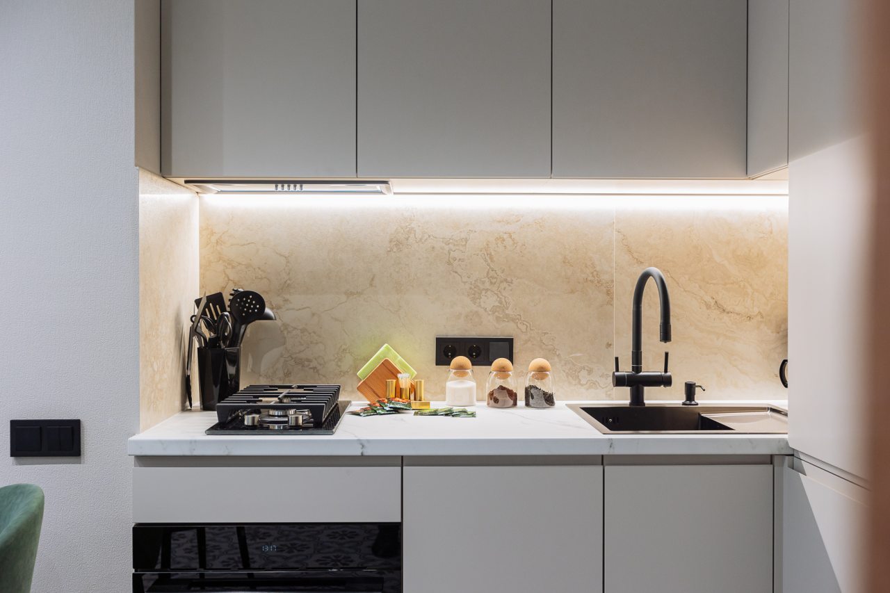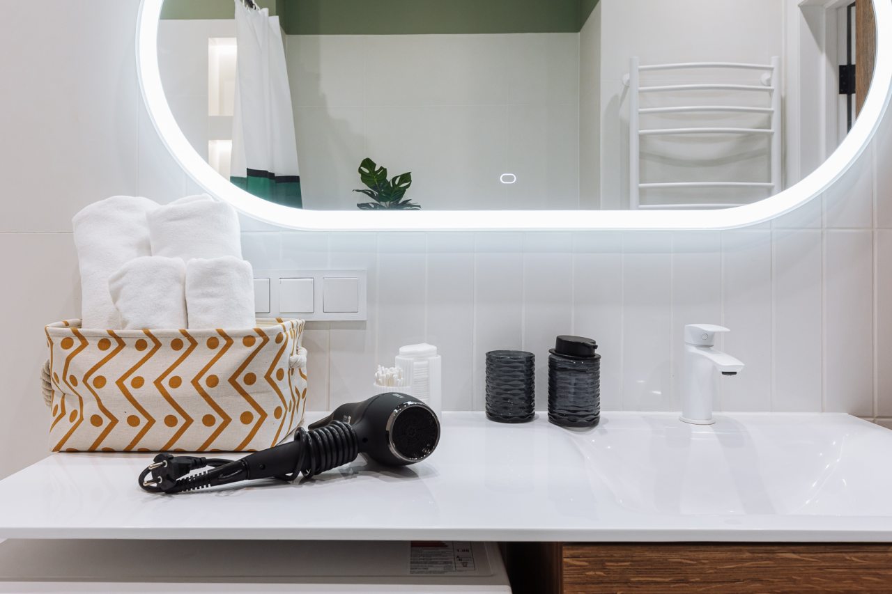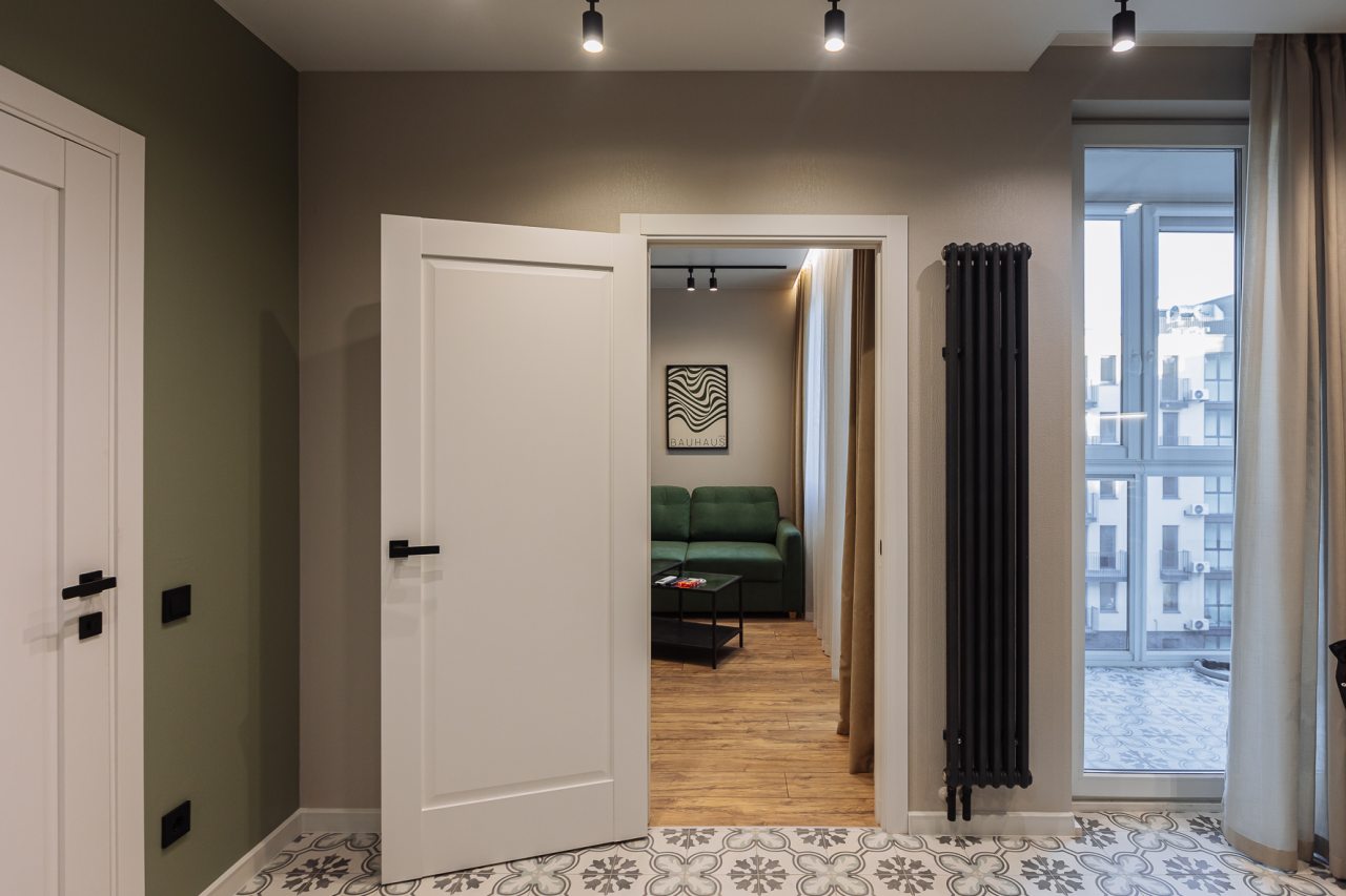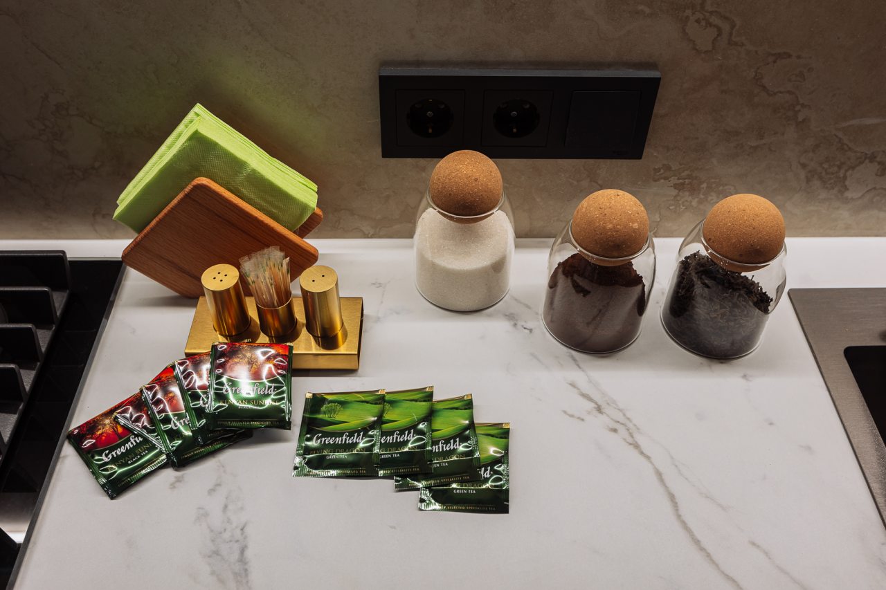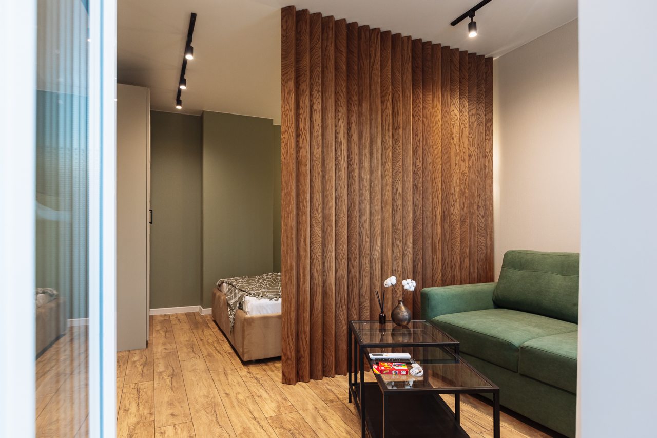 Стильные апартаменты с современным ремонтом укомплектованы удобными спальными местами, розетками возле кровати, кондиционером, телевизором с плоским экраном, шкафом, вешалками для верхней одежды и балконом с видом на внутренний двор. Санузел оборудован комплектом качественной сантехники, средствами личной гигиены, феном и стиральной машиной. Доступна точка высокоскоростного интернета.