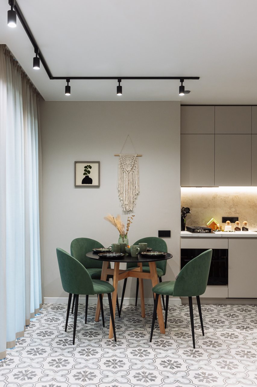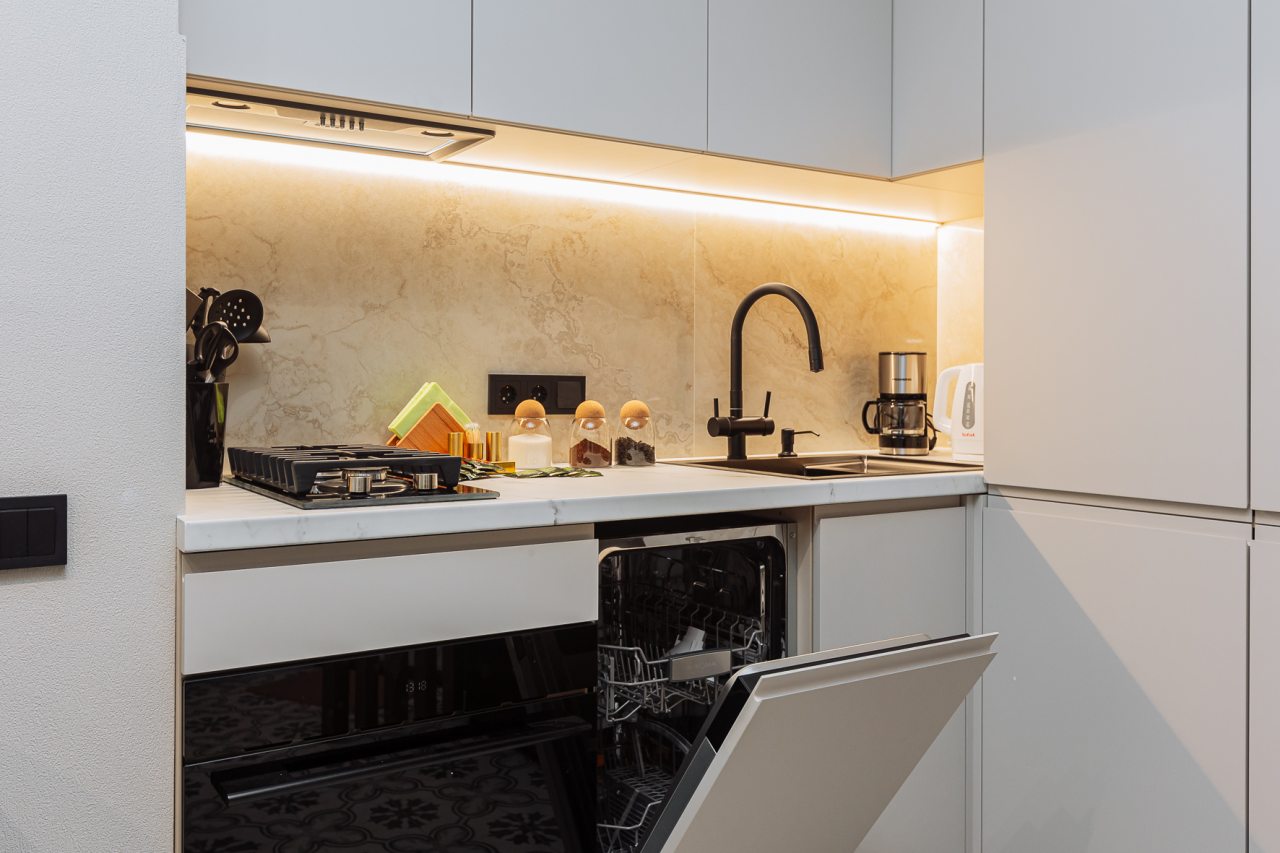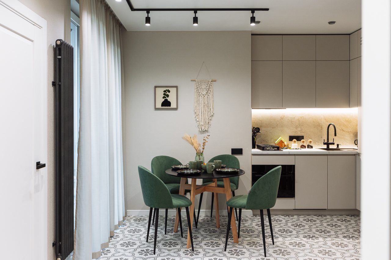 Просторная кухня оснащена гарнитуром, обеденным столом и необходимой бытовой техникой. В доступности кафе и продуктовый магазин.