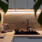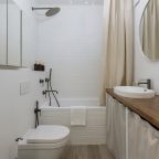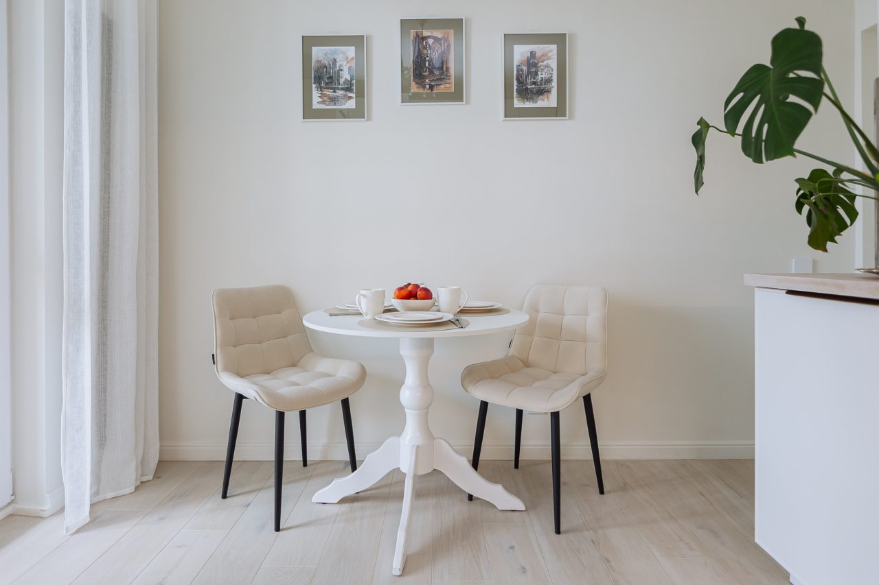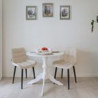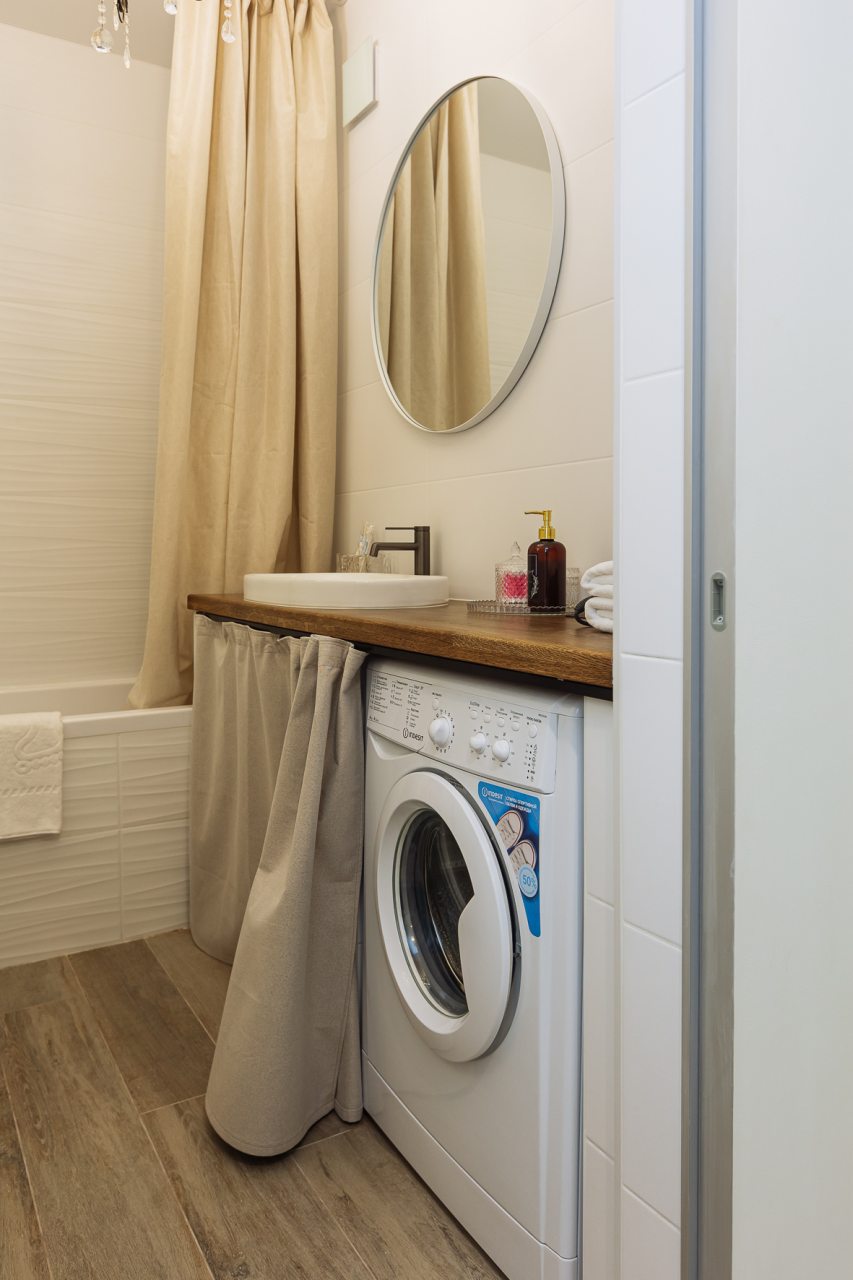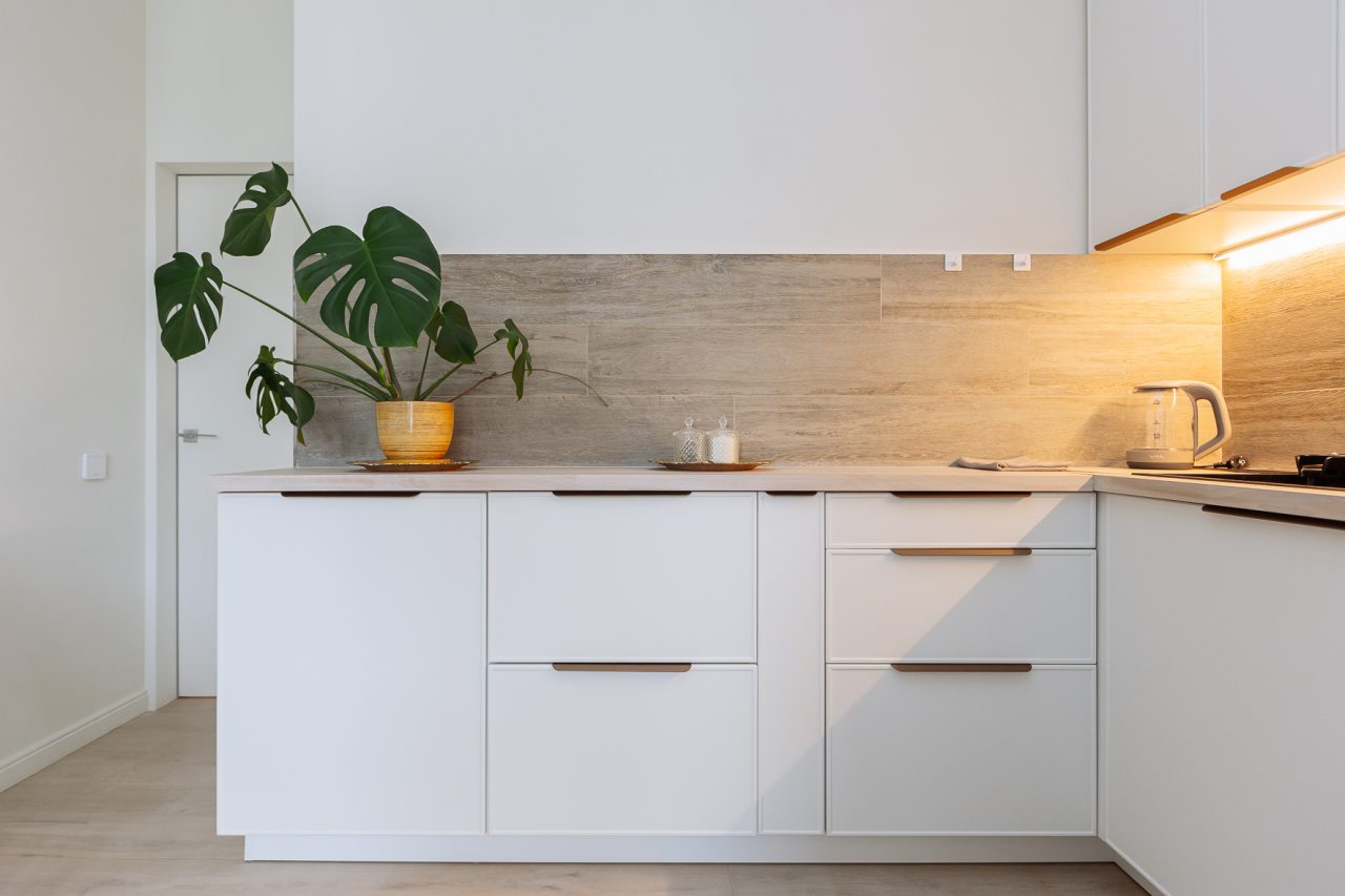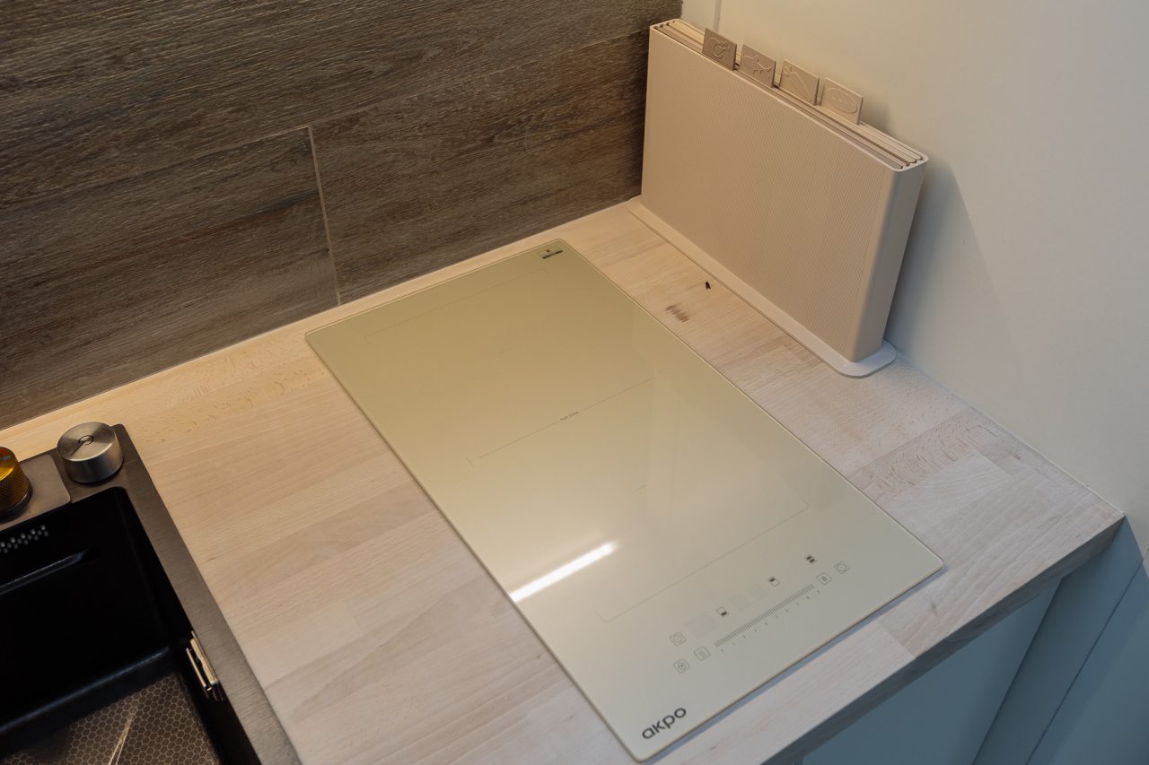 Светлая кухня оснащена: варочной панелью, электрочайником, духовым шкафом и посудой. Неподалеку имеются различные заведения питания, где можно перекусить: пекарня, кафе, кондитерская.