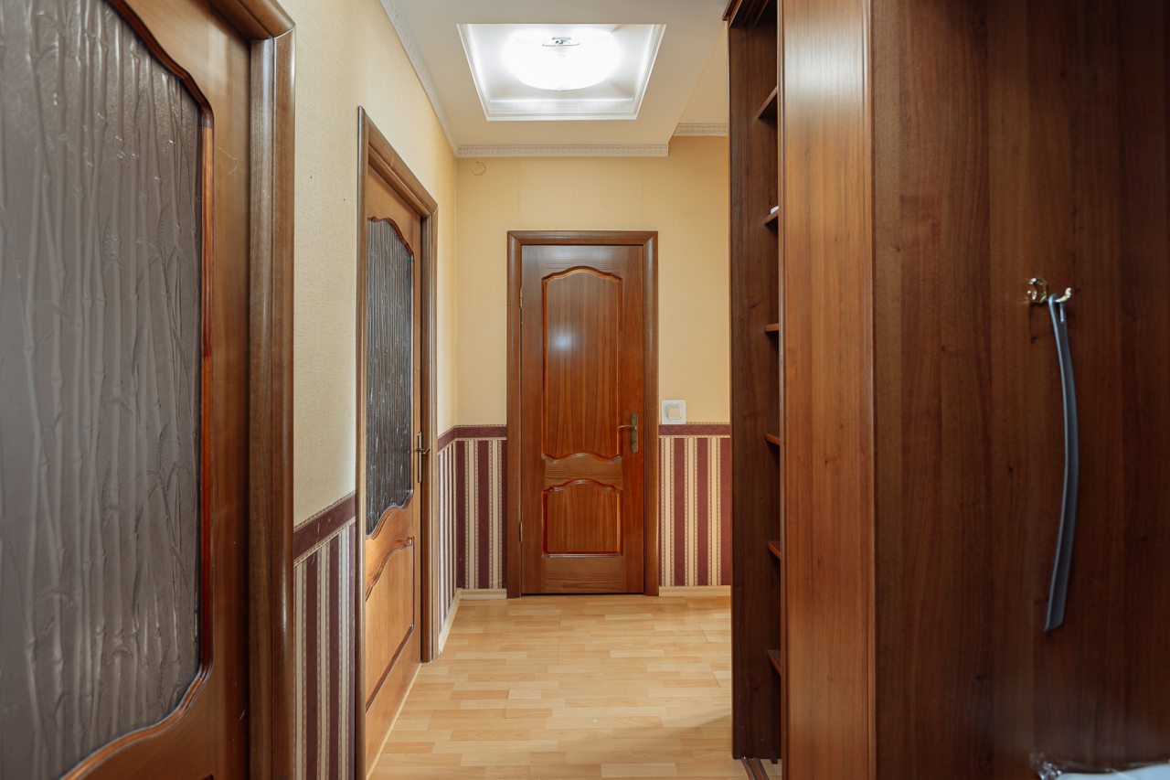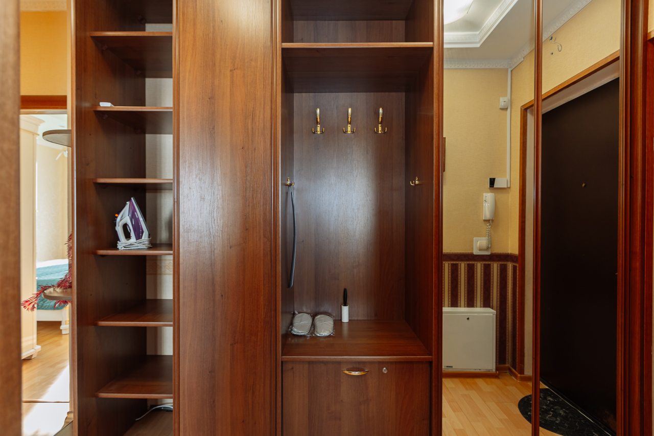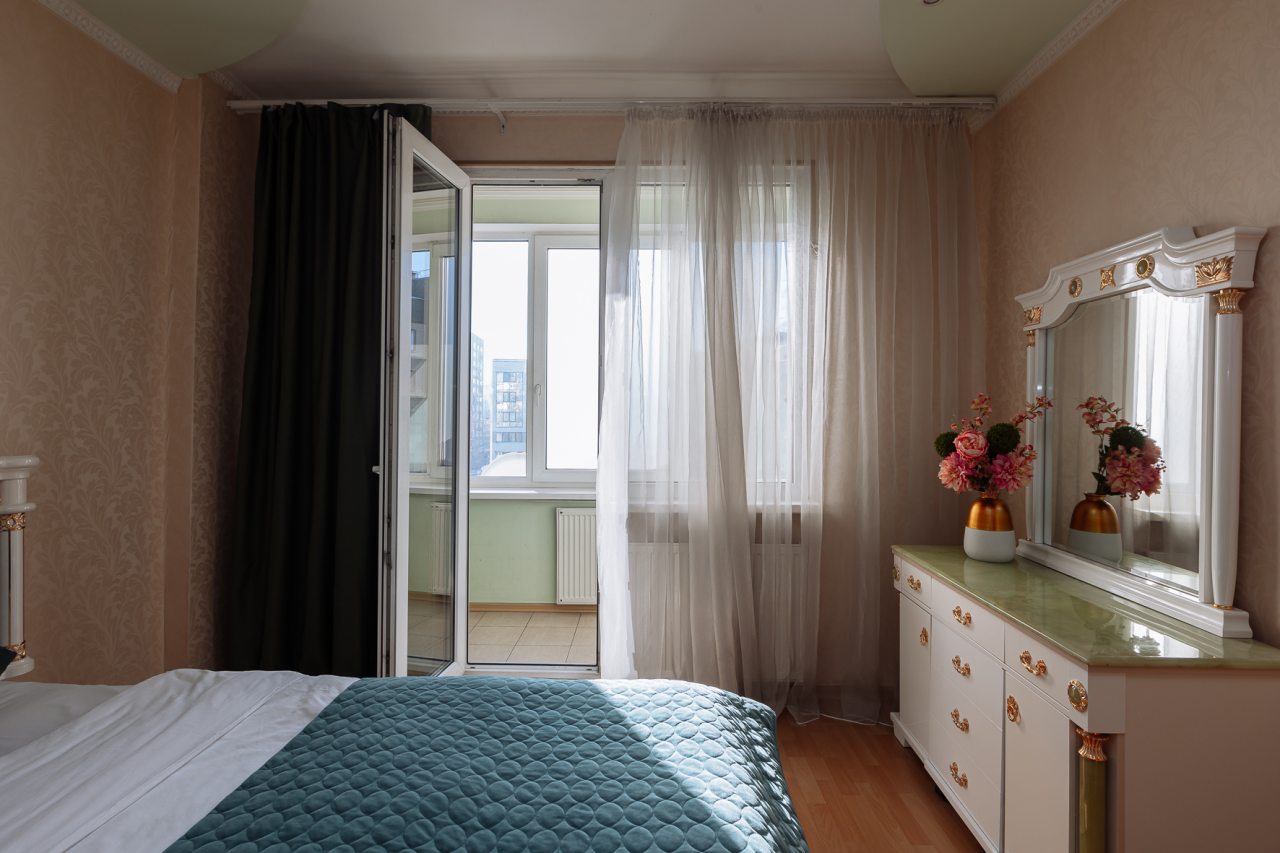 Остановиться предлагается в полностью оснащенной двухкомнатной квартире. В спальне выход на балкон, двуспальная кровать, вместительный шкаф, а в гостевой зоне большой диван и телевизор. В ванной приготовлен комплект полотенец, косметических средств и стоит стиральная машина.