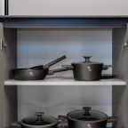 Кухонная зона укомплектована бытовой техникой, посудой, столовыми приборами. Поесть в течение дня можно также в ближайших кафе.
