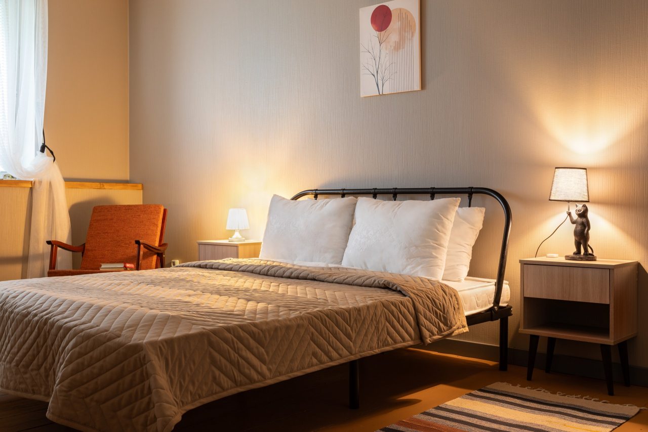 Для размещения предлагаются комфортабельные апартаменты, которые оснащены удобной двуспальной кроватью, прикроватной мебелью, диваном, комодом, телевизором со спутниковым телевидением и др. Санузел укомплектован современной сантехникой, феном, стиральной машиной.