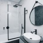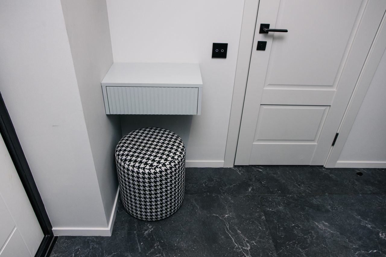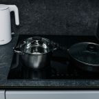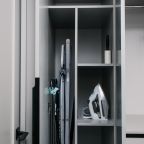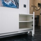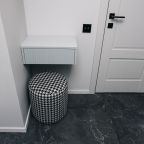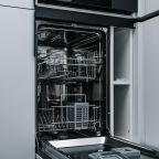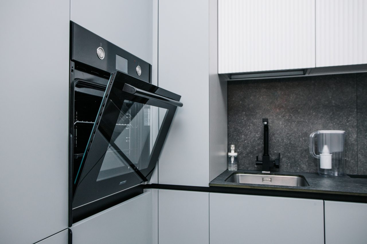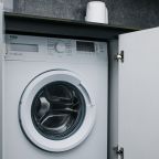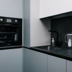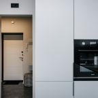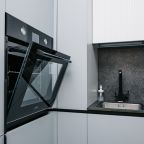 Кухня оснащена стильным гарнитуром, холодильником, духовым шкафом, чайником, варочной панелью, набором посуды, посудомоечной и стиральной машиной. В доступности пиццерия, продуктовый магазин, кафе.
