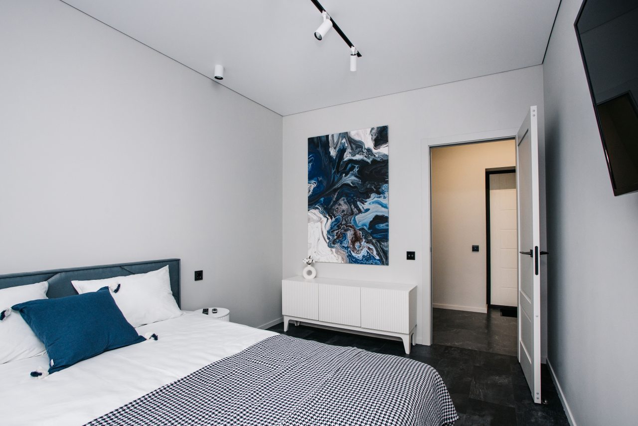 Светлые апартаменты с современным ремонтом укомплектованы необходимой мебелью и техникой для комфортного проживания и отдыха, например: удобной двуспальной кроватью, телевизором, гладильными принадлежностями, кухонной зоной, балконом с уличной мебелью и др. Ванная комната оборудована качественным комплектом сантехники.