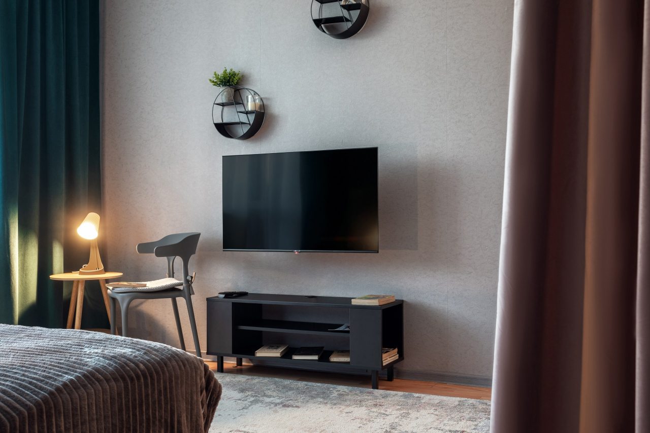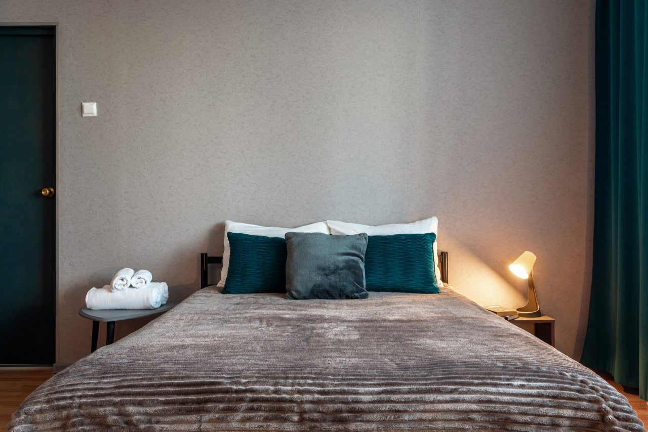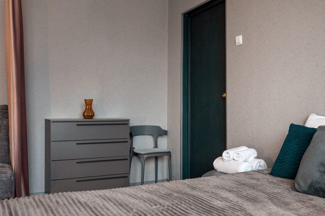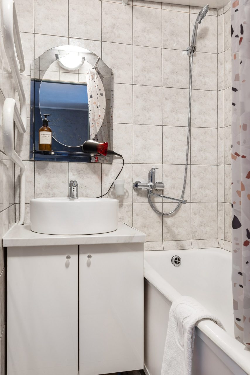 Комфортабельные апартаменты оборудованы удобными спальными местами, комодом, шкафом-купе, телевизором, гладильными принадлежностями, балконом и др. Санузел раздельный и укомплектован качественной сантехникой, феном, средствами личной гигиены.