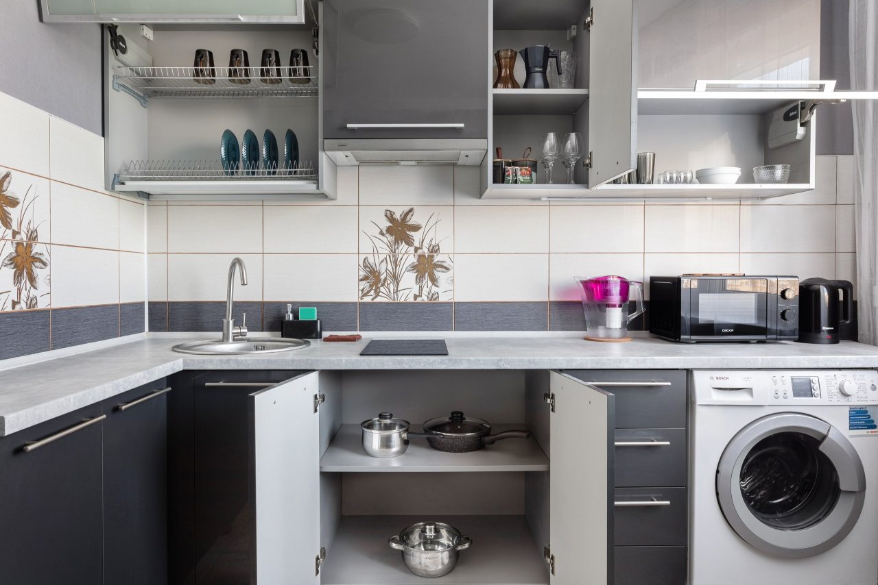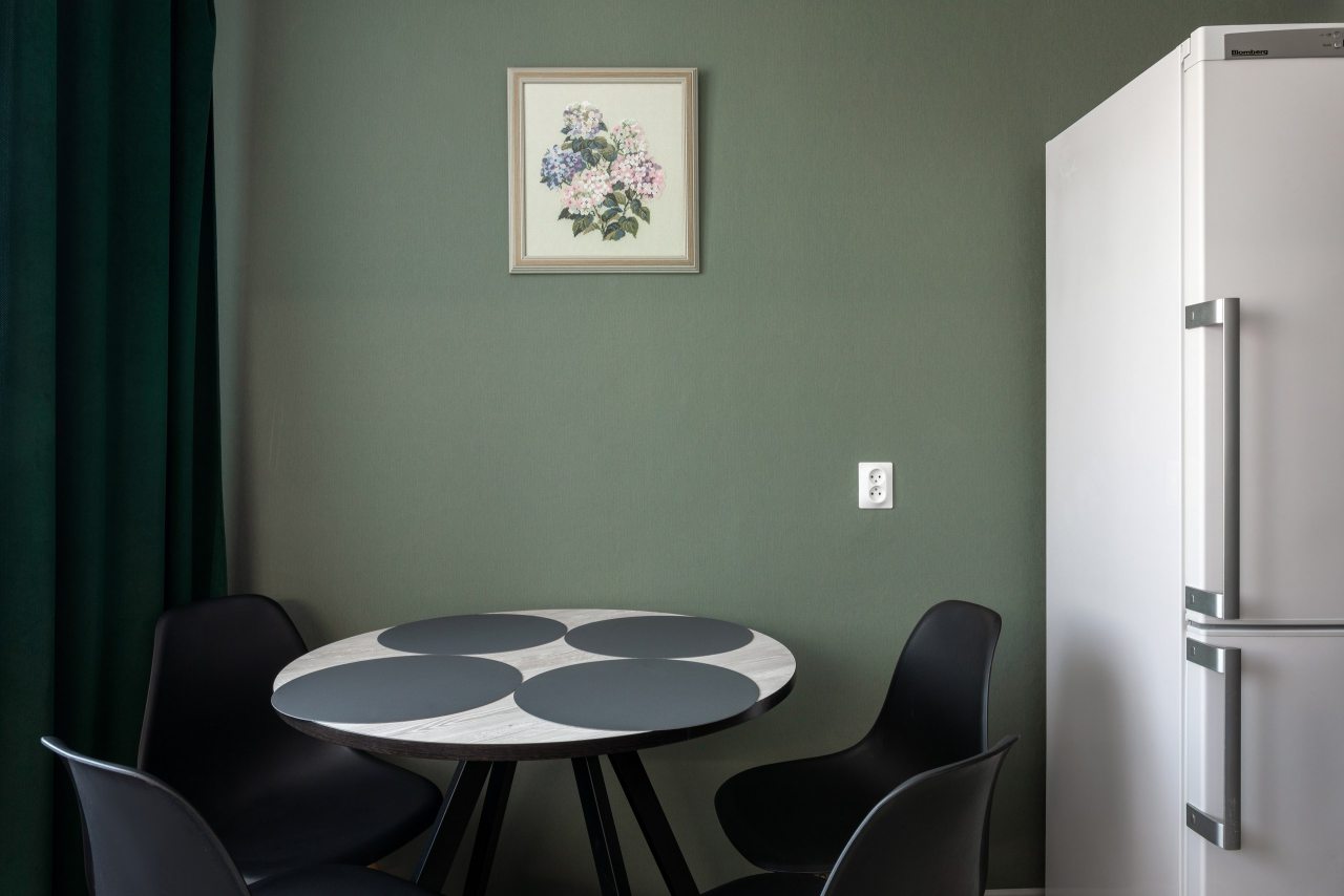 Кухня оснащена гарнитуром, микроволновой печью, стиральной машиной, варочной панелью, вытяжкой, чайником и набором посуды. Пообедать можно в одном из ближайших кафе.