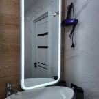 Внутри продумана каждая деталь для комфорта гостей, в том числе двуспальная кровать с качественным матрасом, кресло-качели с биокамином, шкаф-купе с зеркалом, мягкий диван, телевидение, различные сценарии освещения, ванная комната со стиральной машиной и феном.