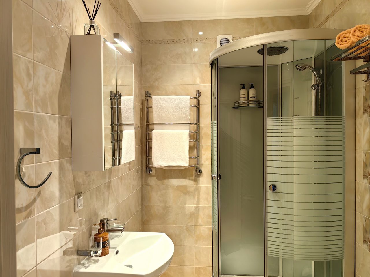 Отличное расположение апартаментов. Неподалеку есть достопримечательности, заведения общественного питания, магазины. Сами апартаменты также произвели на нас приятные впечатления. Для комфорта и удобства всё имеется!