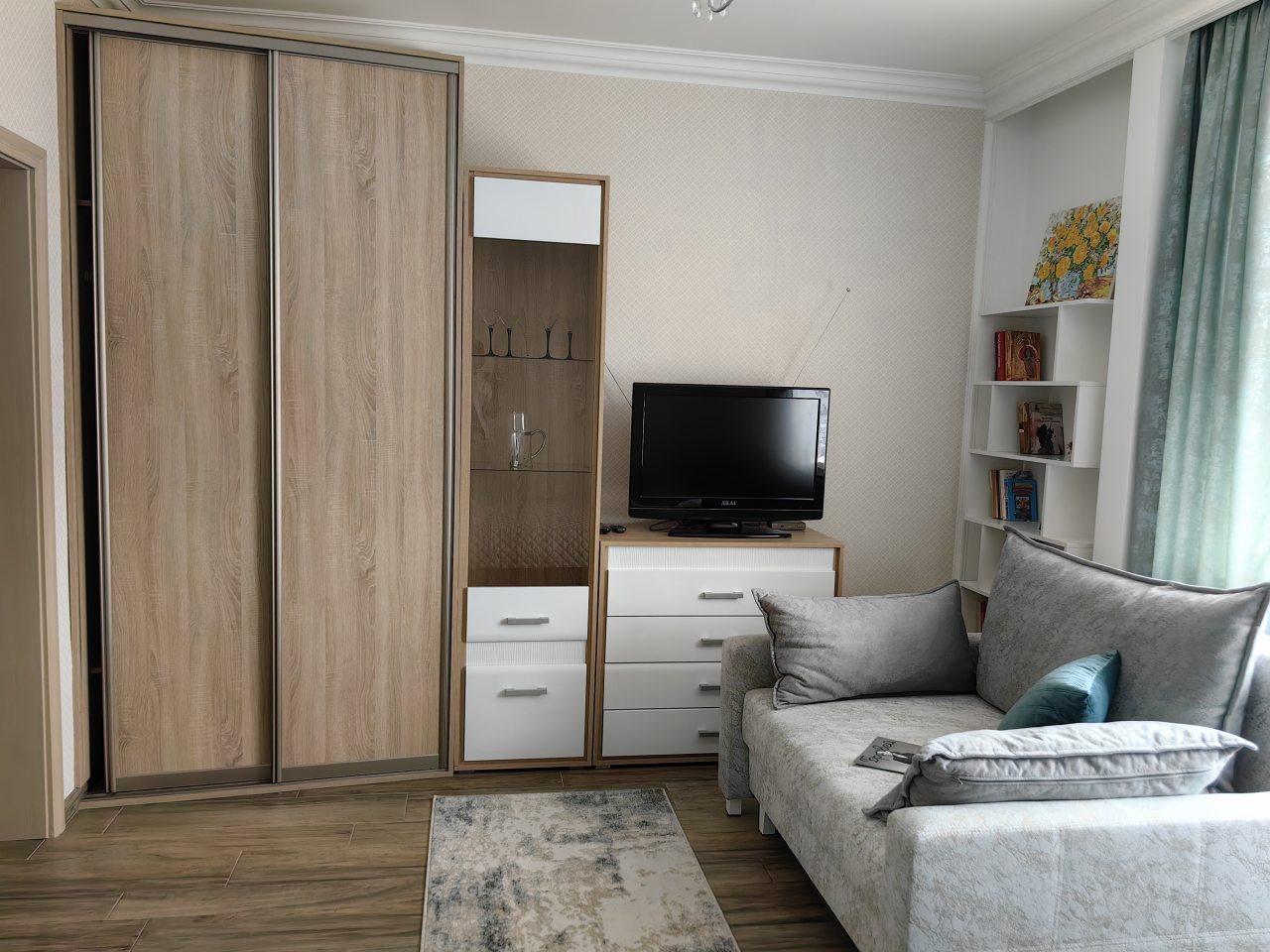 Подобрали для себя эти апартаменты, отличный вариант чтобы остановиться на пару дней. В реальности все как на фото, красиво и стильно. Мебель очень удобная, новая и не продавленная. В санузле есть полотенца. Расположение вблизи остановок транспорта и магазина.