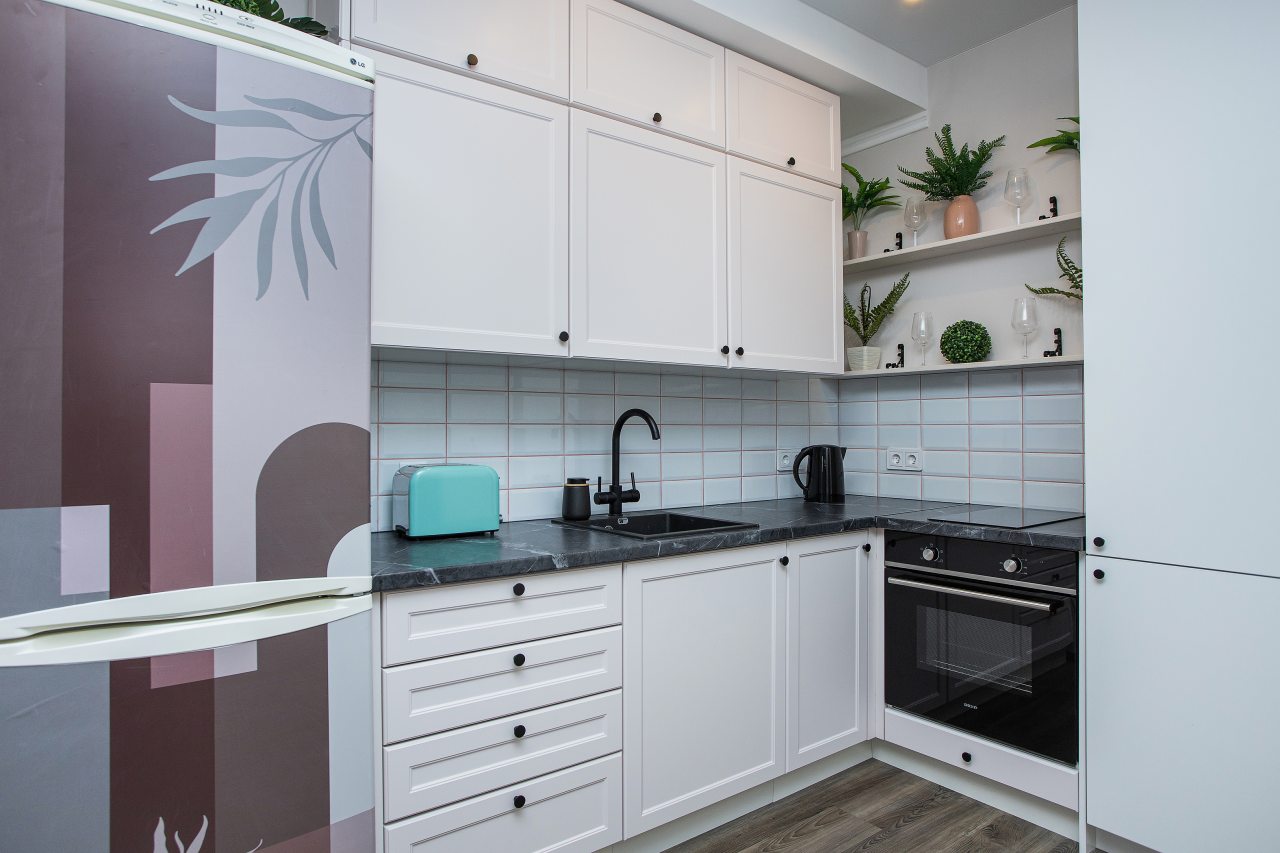 Просторная кухня укомплектована встраиваемой бытовой техникой. Гости могут самостоятельно приготовить любимые блюда, а также воспользоваться электрическим чайником, микроволновой печью и набором посуды. В шаговой доступности магазины, кафе и рестораны.