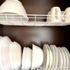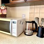 Кухня полностью укомплектована: предусмотрены чайник, плита с вытяжкой, СВЧ, духовой шкаф, посуда.