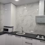 Кухня укомплектована белоснежным гарнитуром, холодильником, микроволновой печью, газовой плитой, вытяжкой, набором посуды и др. Пообедать можно в ближайшем кафе.
