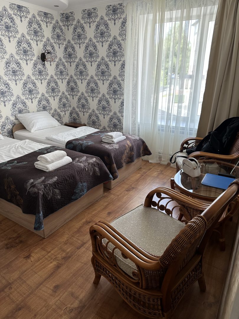 Гостиница расположена близко от центра города, но при этом в тихом месте. В номере убирались каждый день. Меняли полотенца и постельное в соответствии с графиком. Удобные матрасы и подушки способствовали крепкому сну. В целом остались довольны. Фотографии номера соответствуют действительности.