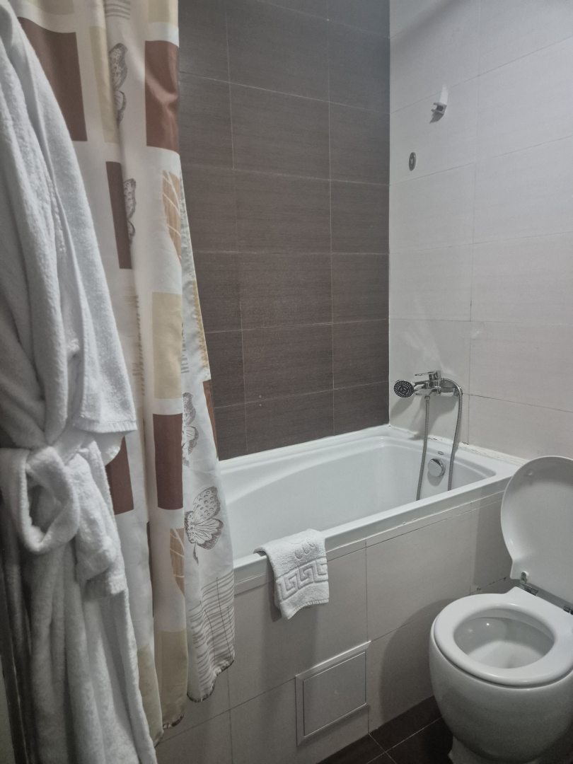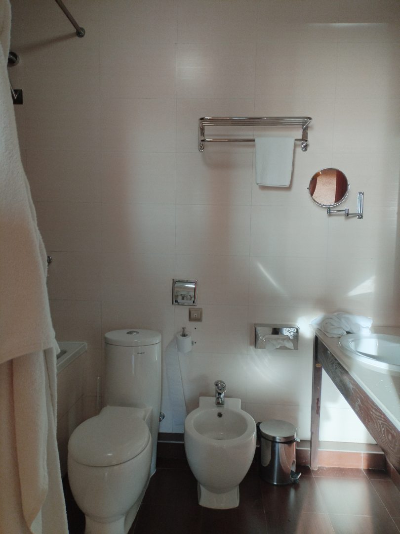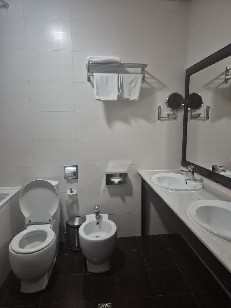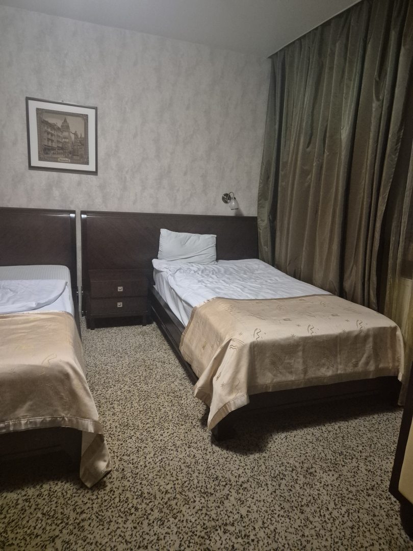 Из недостатков: жила в номере класса «стандарт». Такое впечатление, что номер отеля класса не более двух звезд. В ванной комнате две раковины, одна раковина в больших трещинах, вода в ней не течет. Два душа в кабинке, струи текут в разные стороны, занавеска в душе короткая, когда моешься, вся вода оказывается по всей ванной комнате. Направление струи воды в биде так же вкривь и вкось.В туалете даже не предусмотрен освежитель воздуха. Кровать шире по размеру чем ниша и из-за этого она стоит близко к противоположной стене, из-за чего сложно подойти к окну. Выключатели от бра расположены в дальнем конце комнаты, что тоже крайне неудобно. Вся мебель старая, обшарпанная. Кондиционер в номере встроенный, без возможности регулировки температуры. Завтраки однотипные, еда невкусная. Общее впечатление, что проживала в отеле класса не выше двух звезд, а то и одной... Цена на проживание завышена в разы. Больше в данном отеле проживать не собираюсь. Фотографировать ничего не стала, не люблю писать негативные отзывы, но по возвращении домой, все-таки решила написать.