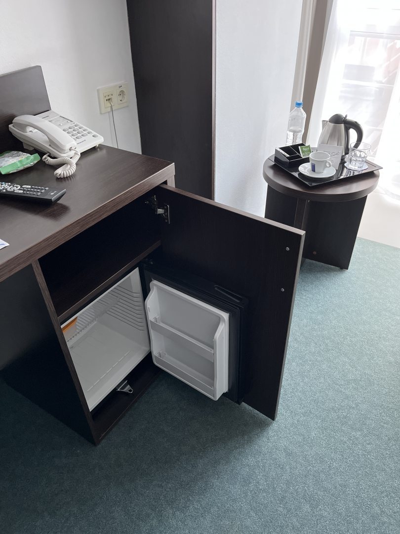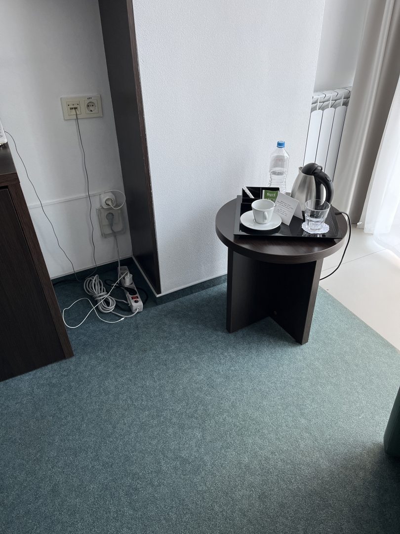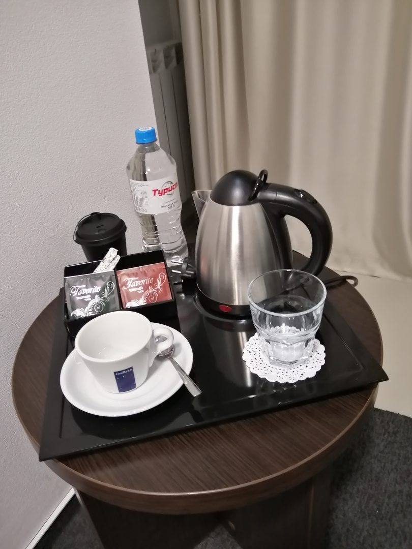 Бельё и полотенца меняли своевременно. В номере есть холодильник, чайник, бокалы, стаканы, чашки, чай, кофе, сахар в пакетиках., 2 бутылки с водой негазированной.