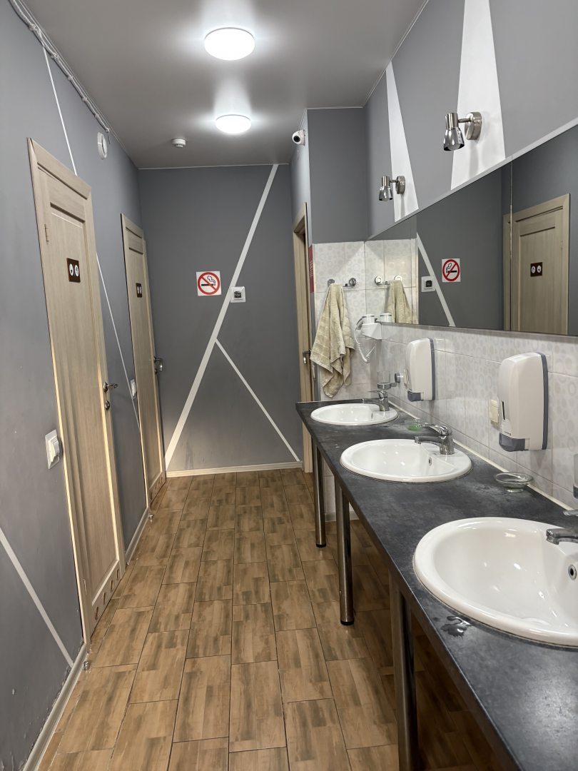 Из недостатков: добавила бы спрей белизны или антисептик в спрее, для удобства ,в душевые, что бы гость мог сам обрабатывать )