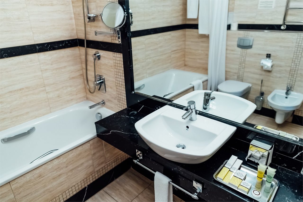 Размещение предлагается в комфортабельных номерах, каждый из которых оснащен такими удобствами: светлое оформление, спальные места, телевизор, быстрый Wi-Fi, кондиционер, стол. Имеется собственная душевая комната. Для гостей предусмотрены наборы косметических средств, тапочки, халат, полотенца.
