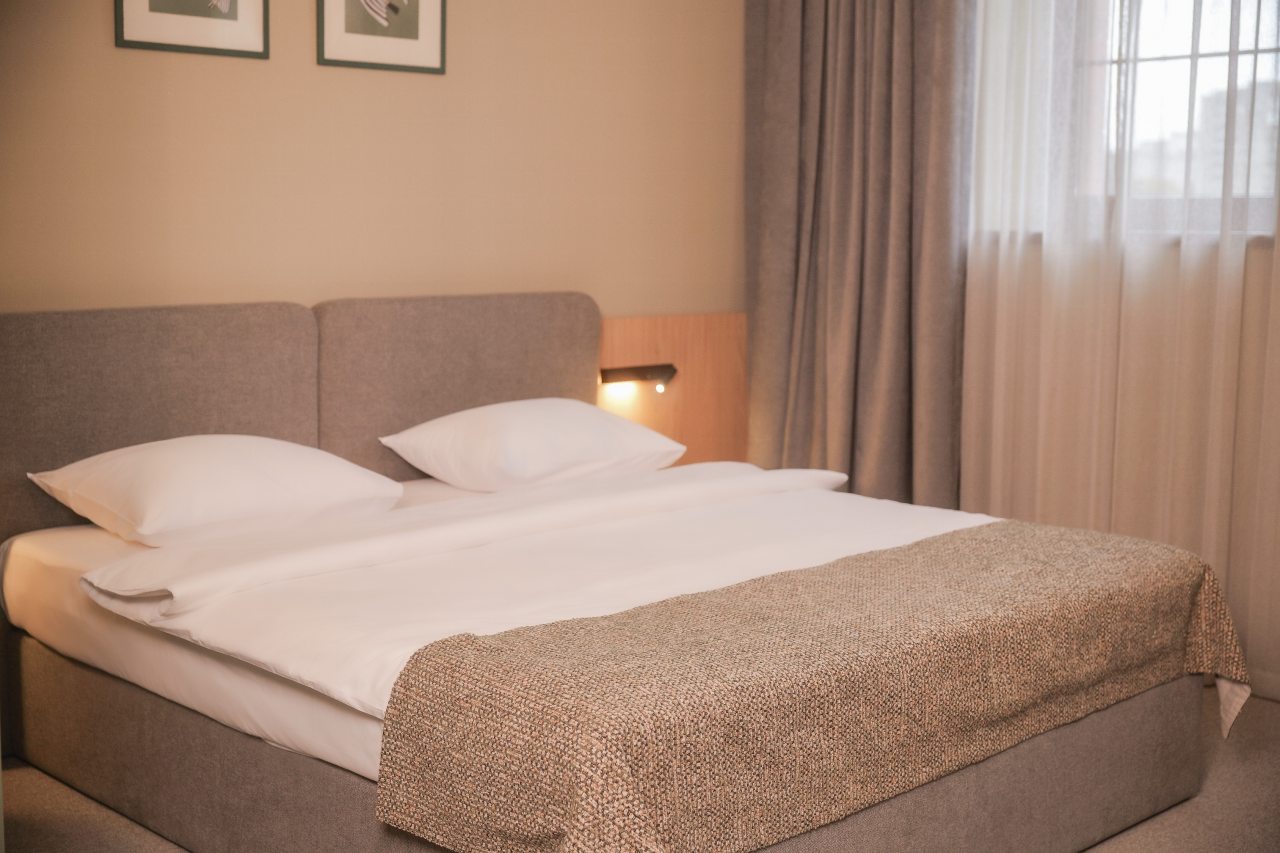 Номера доступны различных категорий, чтобы каждый смог подобрать подходящий вариант. В каждом имеется кровать с удобным матрасом, плотные шторы для качественного сна, прикроватные светильники для комфортного вечернего чтения, доступ к Wi-Fi, а также индивидуальный санузел с набором полотенец и гигиенических средств. В зависимости от категории в номере может быть душевая или ванна.