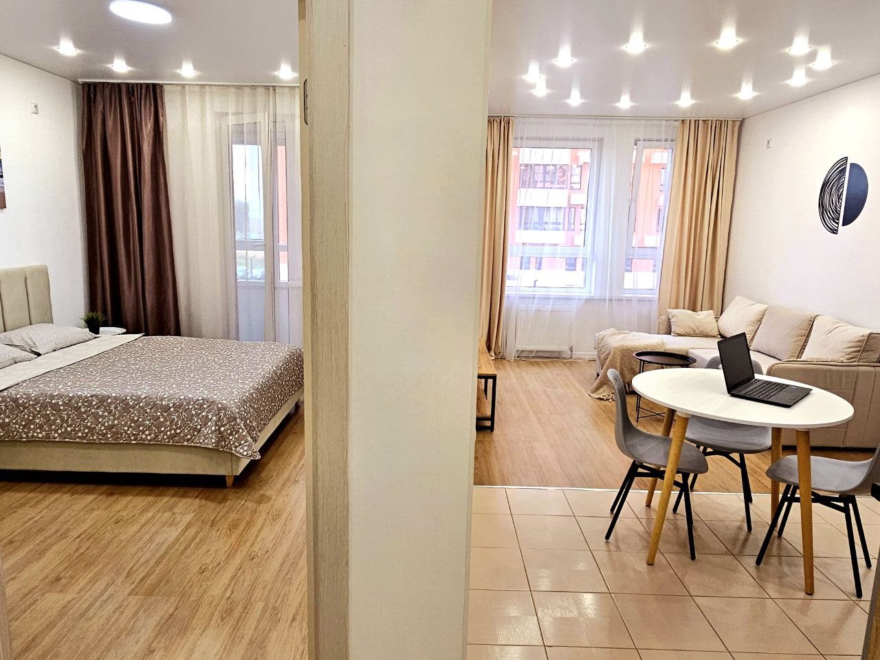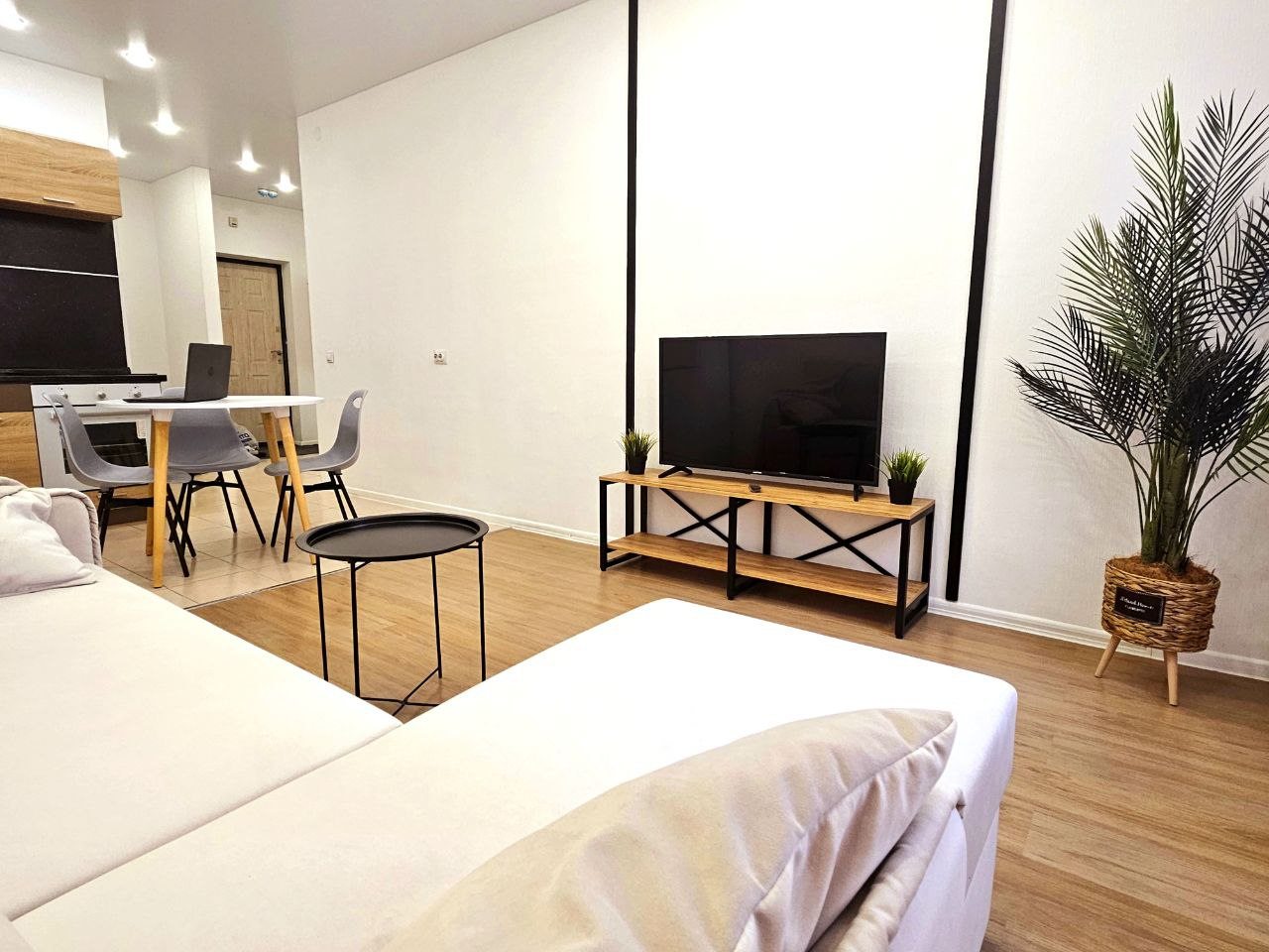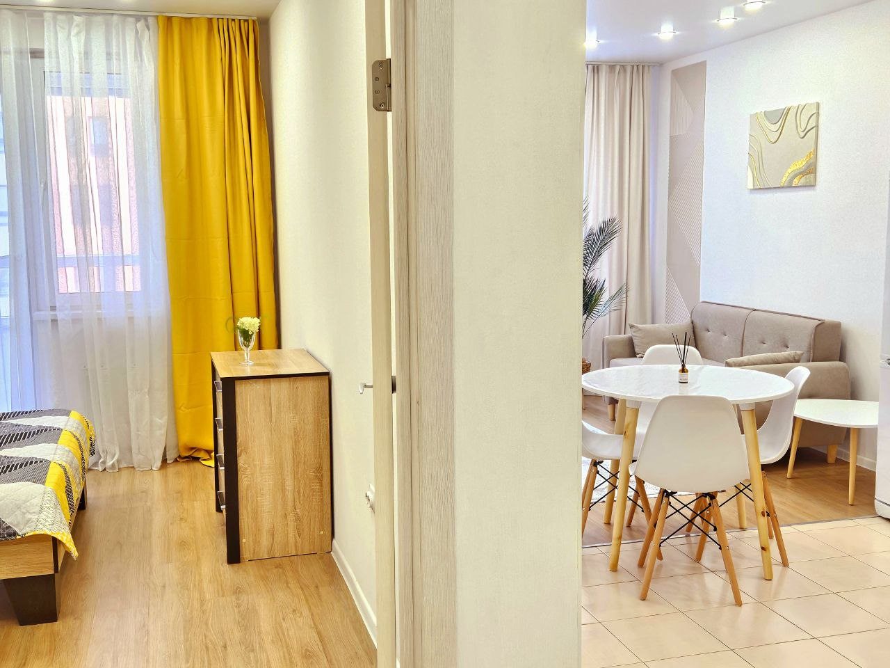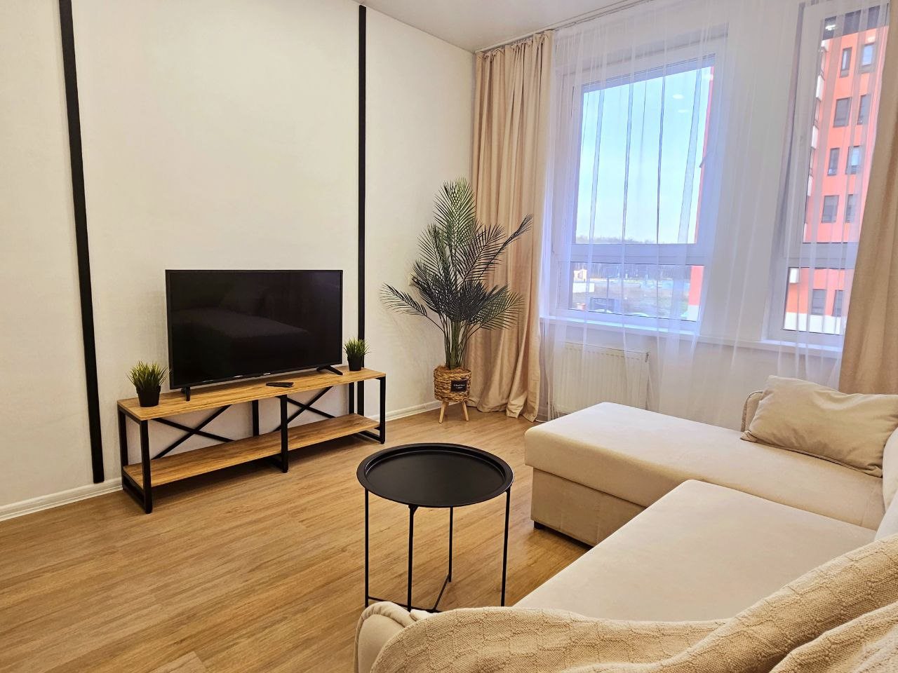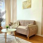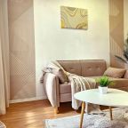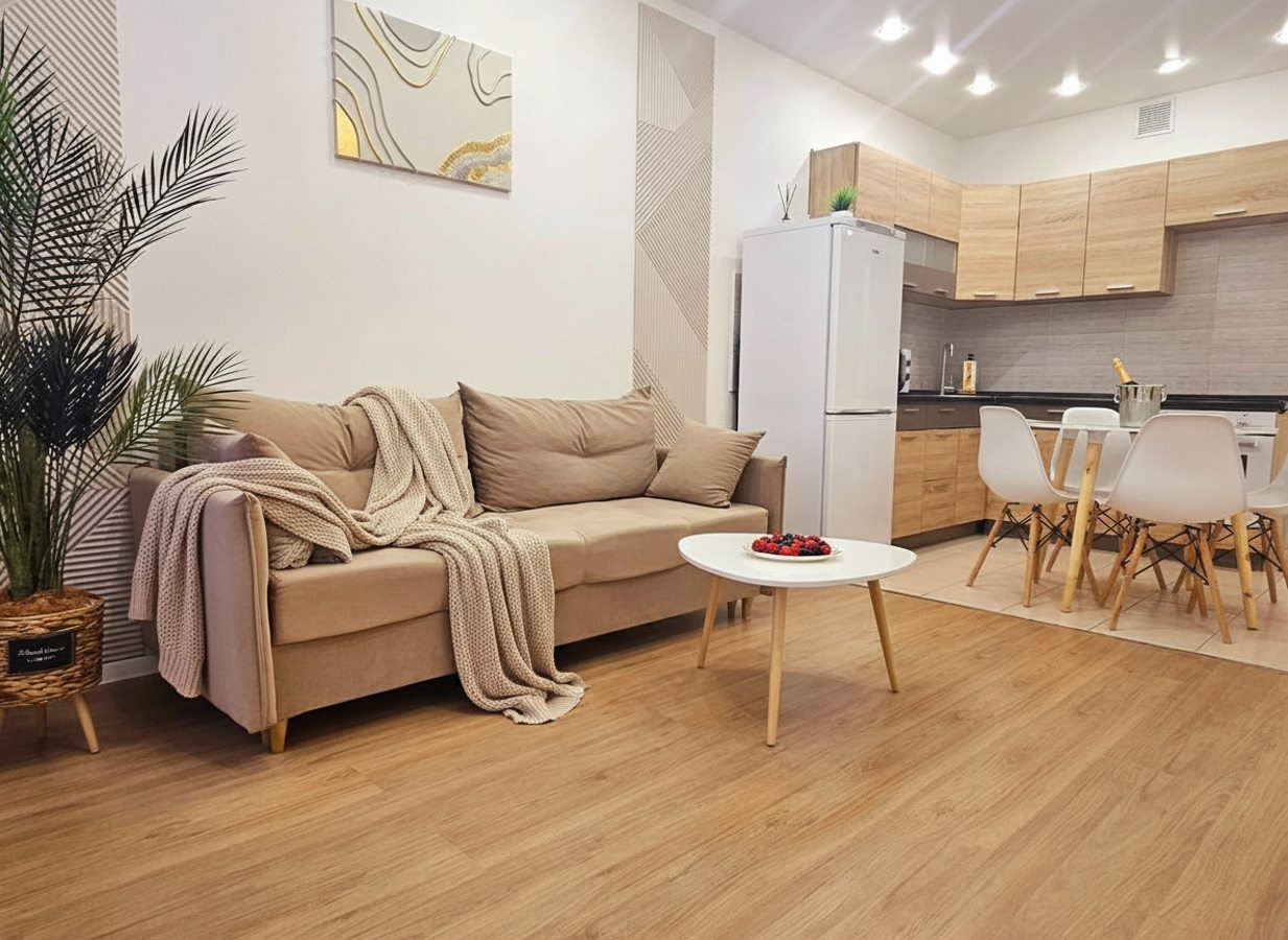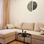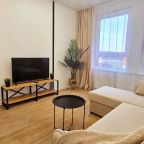 Для размещения представлены пара уютных апартаментов, оформленных в современном стиле. Они подготовлены к пребыванию гостей, укомплектованы качественной мебелью и техникой: двуспальная кровать, мягкий диван, телевизор, обеденный круглый стол. В ванной комнате есть индивидуальные средства гигиены и установлена стиральная машинка. При необходимости можно воспользоваться феном.