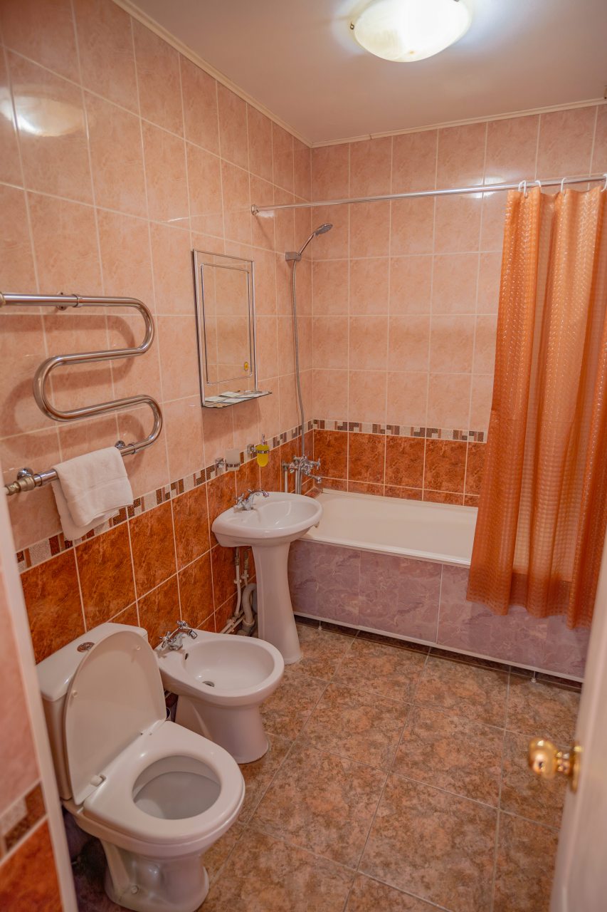Из недостатков: нет тапочек в комнате, хотелось бы чайник и фен в номере